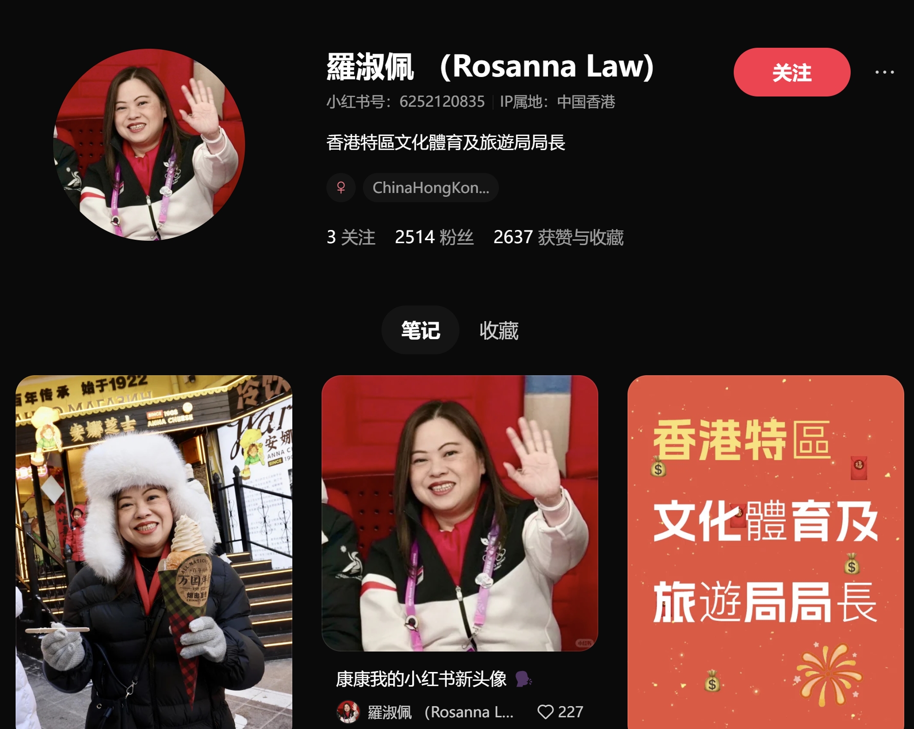 大公文匯全媒體報道,內地社交平台小紅書近年廣受網民歡迎,不少香港特區政府機構及官員亦紛紛「跟風」進駐。文化體育及旅遊局局長羅淑佩近日也成為小紅書「新晉成員」,雖然暫時只發了3則帖文,但也收穫了2637個讚好與收藏。