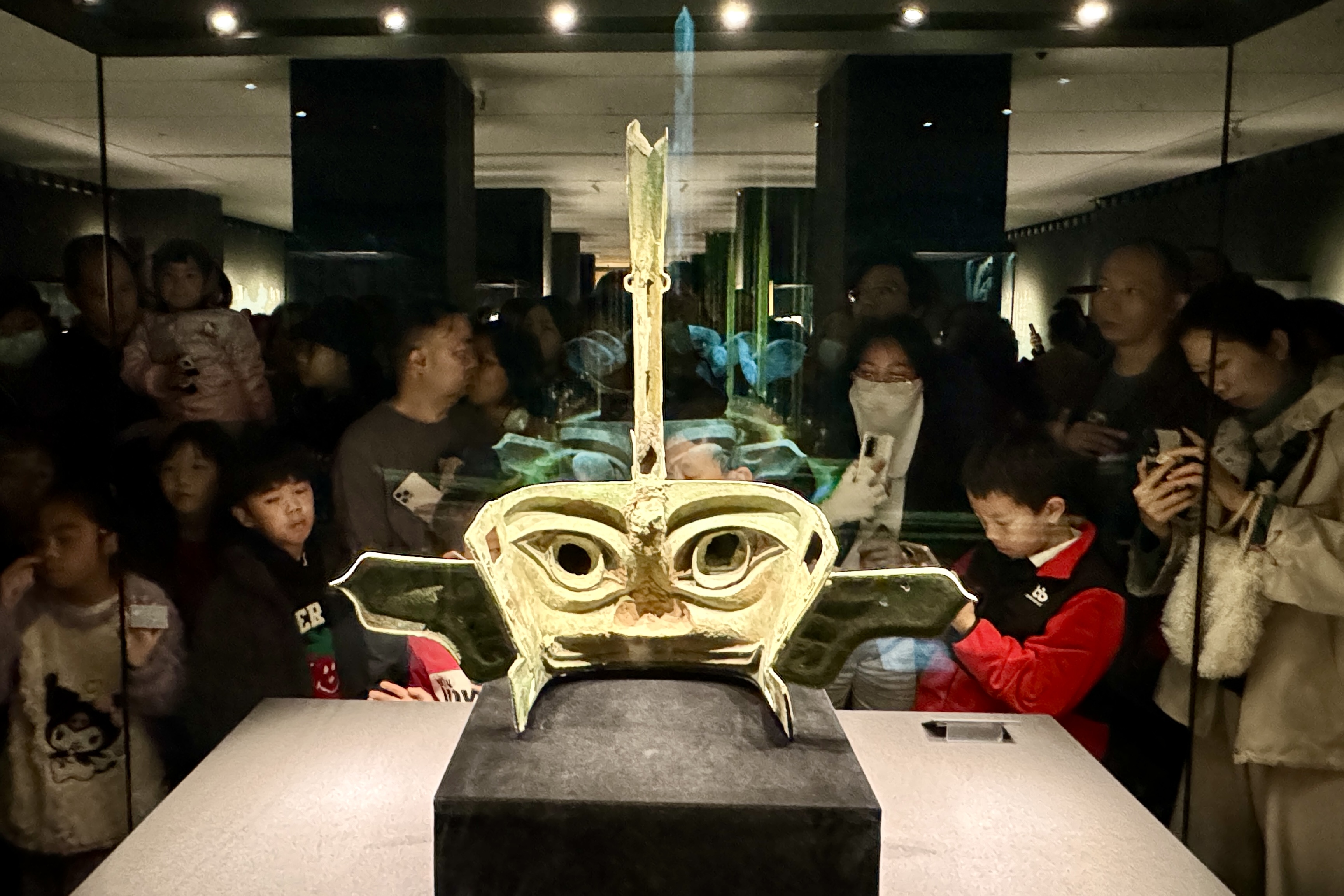 (大公文匯網 記者 李紫妍、田欣妍)戴金面罩青銅人頭像、青銅戴冠縱目面具、青銅鳥、青銅太陽形器……一大波「頂流」國寶文物現身大灣區,帶來新春重磅新展!「古蜀瑰寶——三星堆與金沙」文物特展正在橫琴文化藝術中心熱展,來自三星堆博物館、四川省文物考古研究院四川博物院、成都金沙遺址博物館、成都博物館、成都文物考古研究院六家文物收藏單位的青銅器、金器、玉器等163件(組)國家寶藏齊聚橫琴,其中一級文物多達36件,還有很多三星堆遺址近期新發掘的文物亮相,包括港澳民眾在內的灣區居民在家門口就能大飽眼福。據了解,該展覽將持續展出至4月。