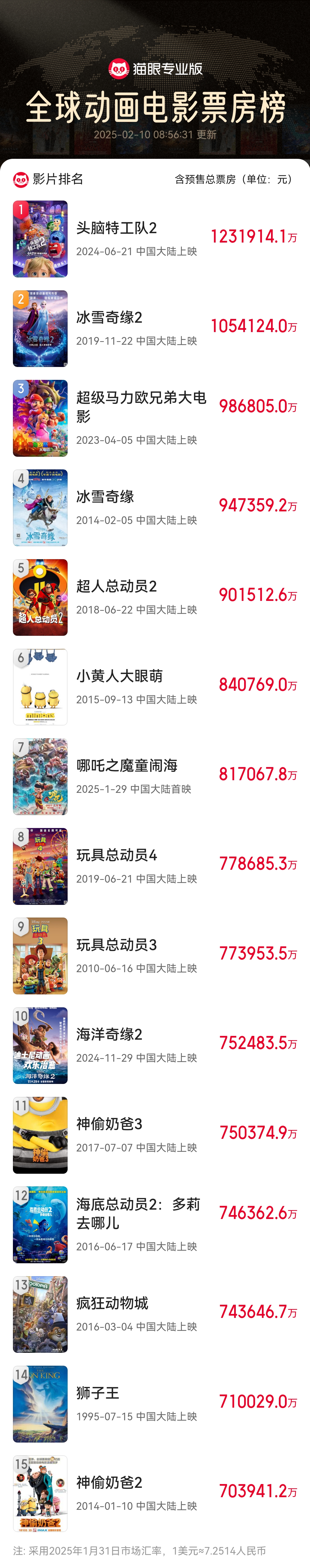 (大公文匯網 記者 馬曉芳)《哪吒之魔童鬧海》自春節檔上映以來,票房一路高歌猛進。據貓眼專業版數據,截至2月10日9時,《哪吒之魔童鬧海》總票房(含點映及預售)已達81.7億(人民幣,下同),超越《變形金剛3》票房,全球影史票房榜升至34位。同時,《哪吒2》的票房已超越《玩具總動員4》,位列全球動畫電影票房榜第7位,向《小黃人大眼萌》票房發起追趕。