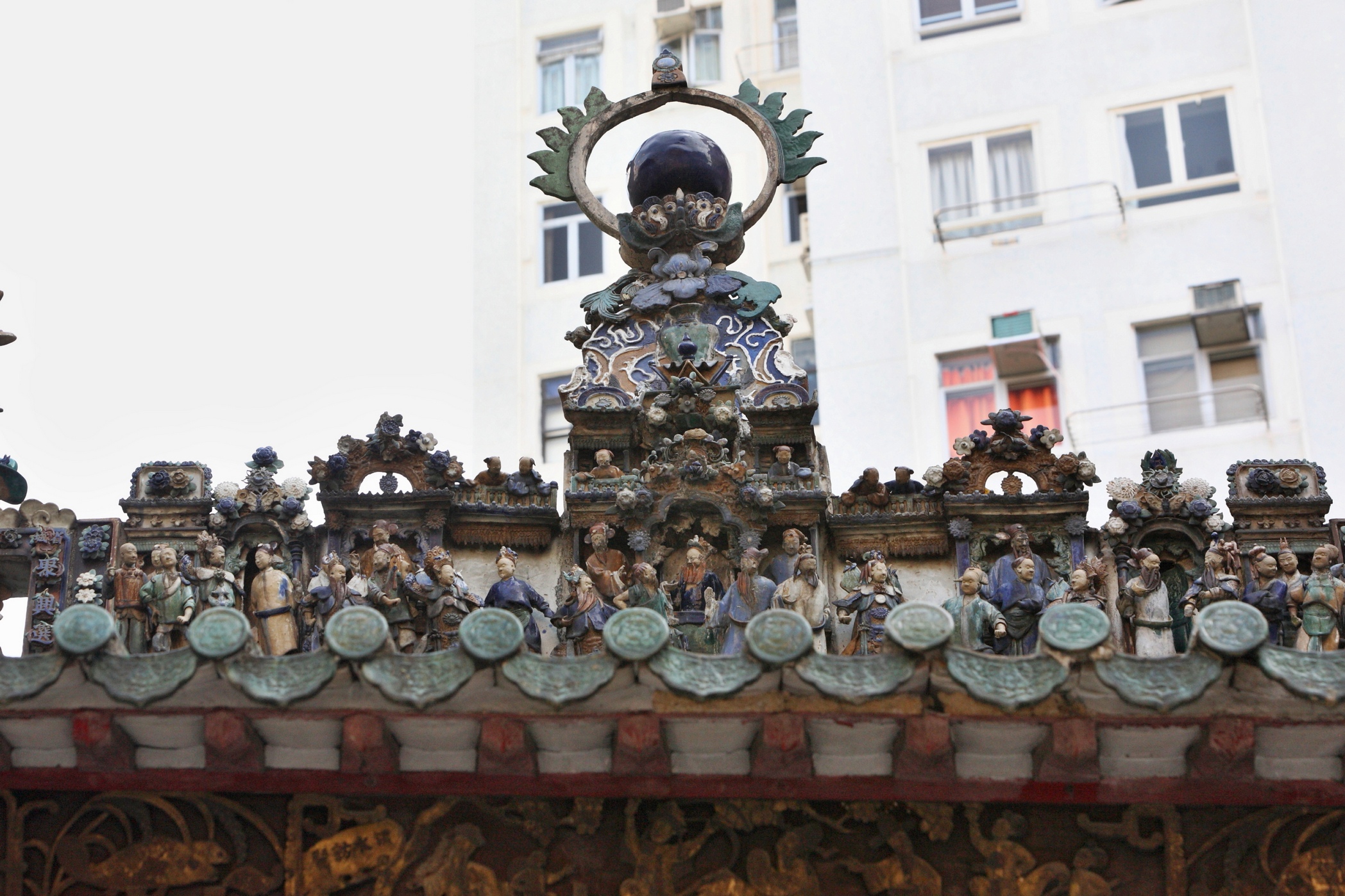 在參觀魯班先師廟時,若仔細觀察屋脊飾,或許能找到腳踩風火輪、手持乾坤圈、身纏混天綾的哪吒的身影。