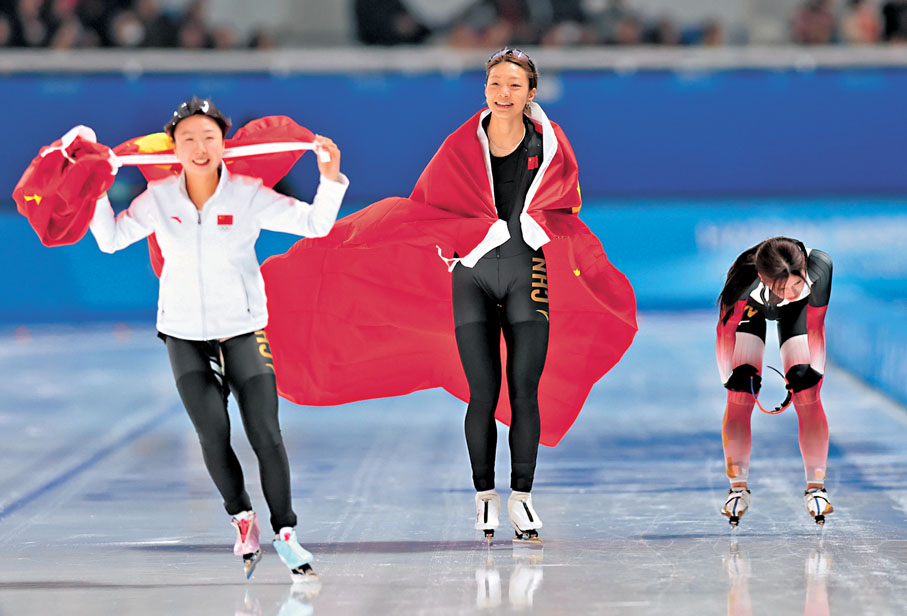 爽快的哈爾濱姑娘楊濱瑜獲得冠軍後,毫不掩飾興奮的心情,「自豪、驕傲、開心,看到三面五星紅旗再次同時升起來,尤其這次國歌是因為我而奏響的更開心了。雖然爸爸媽媽因為沒搶到票,沒能到現場觀看比賽,但是家鄉的觀眾太熱情了,他們歡呼為我加油的時候,我覺得內心特別有力量,滑得更快了!」