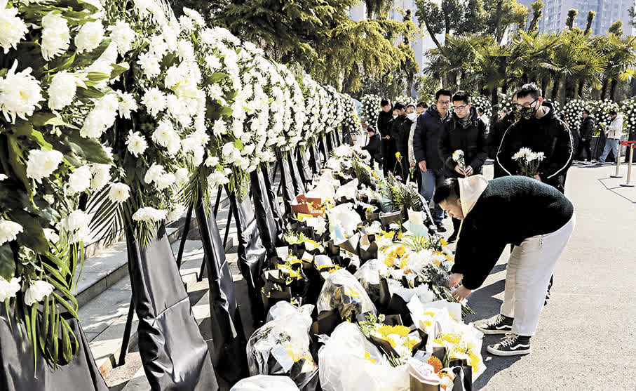 (香港文匯報 記者 張帥、盧靜怡)「共和國勳章」獲得者、中國第一代核潛艇工程總設計師黃旭華院士 2月6日晚因病在武漢逝世,享年99歲。2月10日上午,黃旭華院士遺體送別儀式在武昌殯儀館舉行,前去悼念的人群絡繹不絕,萬餘人手捧鮮花送別,武漢地鐵也打出「國士遠行,深海永念」等標語,致敬「核潛艇之父」。連日來,社會各界人士參加弔唁,武漢市內鮮花幾乎全部賣空,弔唁場所周邊圍牆擺滿鮮花,一路延伸,「傾盡一城花,只為奠一人」。