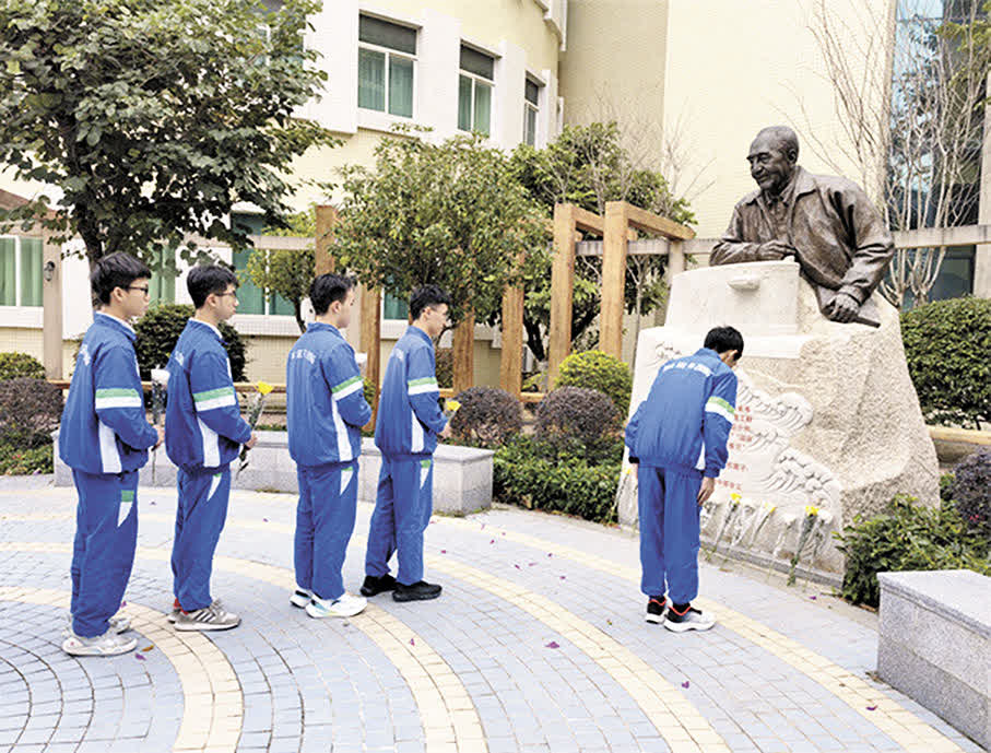少年時期,黃旭華院士曾在汕頭度過一段求學時光。在他曾經就讀的汕頭市聿懷中學,其銅像前亦擺滿鮮花。