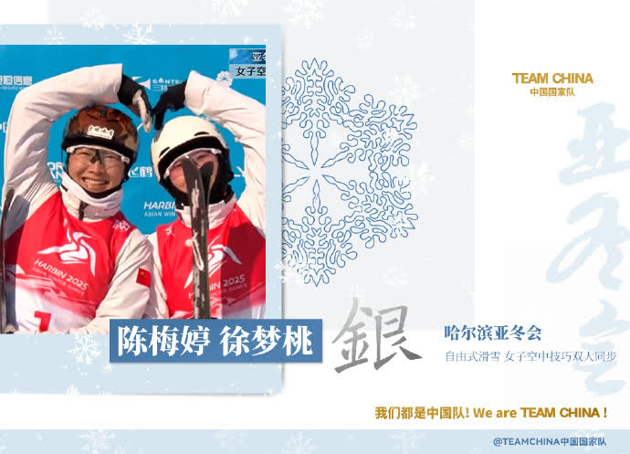 據央視新聞報道,11日,哈爾濱亞冬會自由式滑雪女子空中技巧雙人同步決賽中,馮俊熙/王雪配合默契,以87.12的最終成績摘得金牌!徐夢桃/陳梅婷組合以84.86的最終成績獲得銀牌!