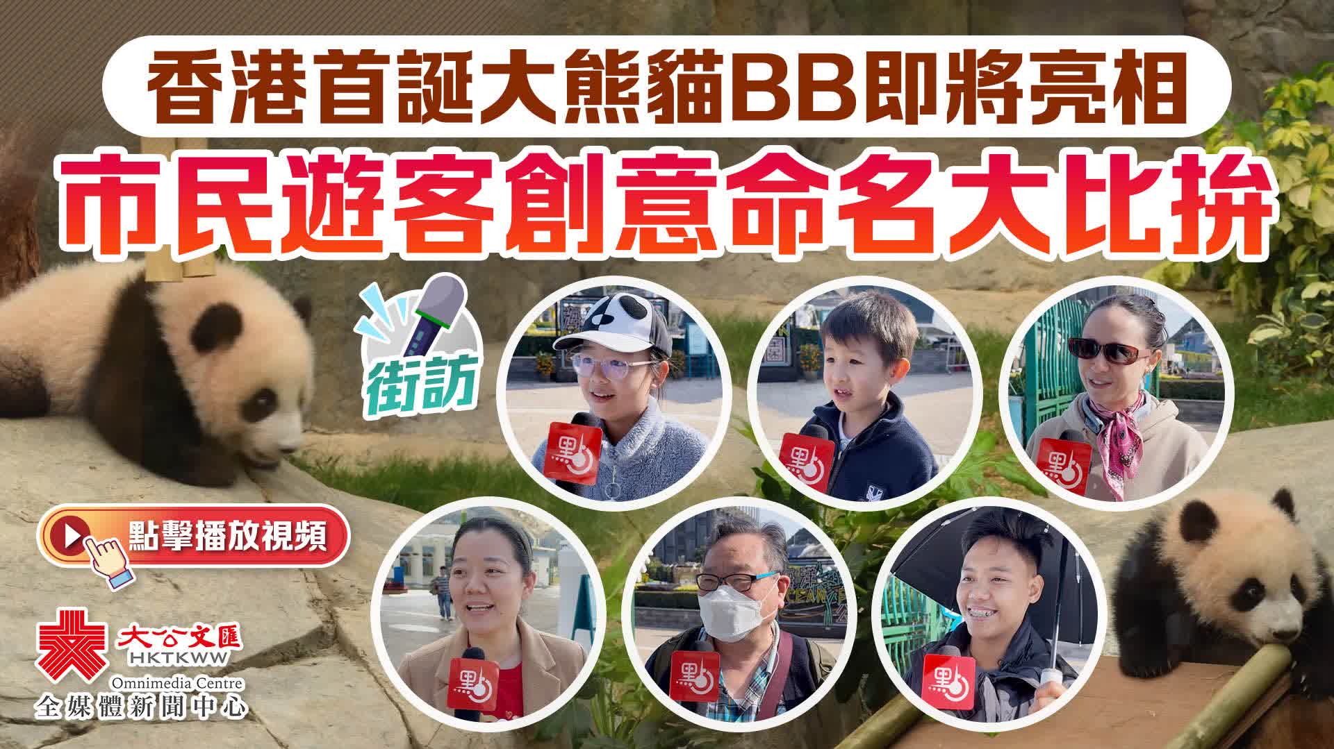 大公文匯全媒體報道,隨着大熊貓「盈盈」誕下一對龍鳳胎,香港目前育有6只大熊貓。首對於香港出生的大熊貓雙胞胎「家姐」和「細佬」,將於本月16日(周日)與公眾見面。記者來到香港海洋公園附近採訪市民和遊客,聽聽他們對於大熊貓寶寶的期待。