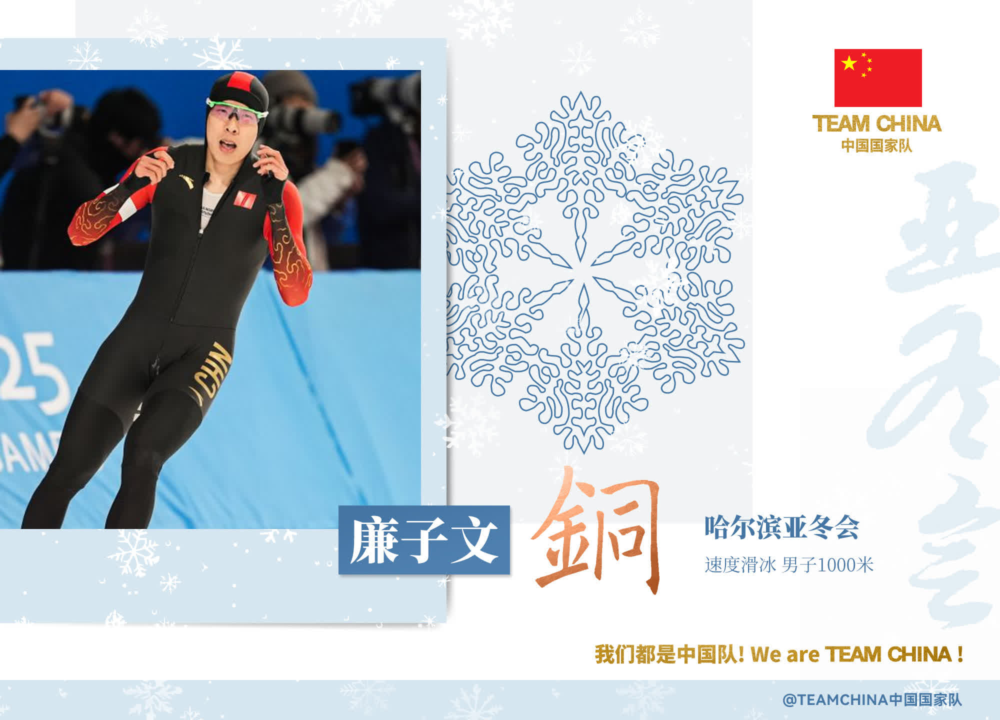 據央視新聞報道,亞冬會速度滑冰男子1000米比賽,中國選手寧忠岩以1分08秒81的成績獲得金牌,為中國速度滑冰隊再奪一金,同時創造了新的賽會紀錄,這也是寧忠岩本屆亞冬會的第三枚金牌。另一位中國選手廉子文摘得銅牌。