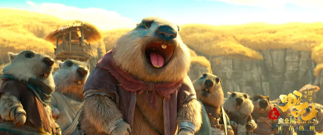 第二是情節接地氣。《哪吒2》在講述一個宏大且深刻的故事,但是卻沒有讓人覺得說教味很重。一口地道四川方言的太乙真人,肥肥的肚腩走起路來甩來甩去,平時還愛吃愛睡;一群呆呆傻傻的土撥鼠吃着比海妖鼻涕還難下嚥的泔水,被哪吒趕來教訓打破了飯碗,一聲「土撥鼠叫」想必喚醒了不少人的互聯網記憶;哪吒面見無量仙翁時上廁所走錯地方,導致無量仙翁將哪吒的「童子尿」誤認為是仙露喝下去,感嘆今天的仙露味道如此濃郁......以上種種情節有不少人評論為「低趣味」「炒熱度」。但也許正是這樣看似「低趣味」的情節降低了觀影門檻,讓很多曾經對於看電影有「不配得感」的觀眾同樣能從電影中獲得趣味。畢竟,電影屬於大眾文化,需要嚴肅對待,但也不應該捧太高。只有進入影院,接下來的情節才會慢慢推進,而影片對人的影響才會慢慢展現。