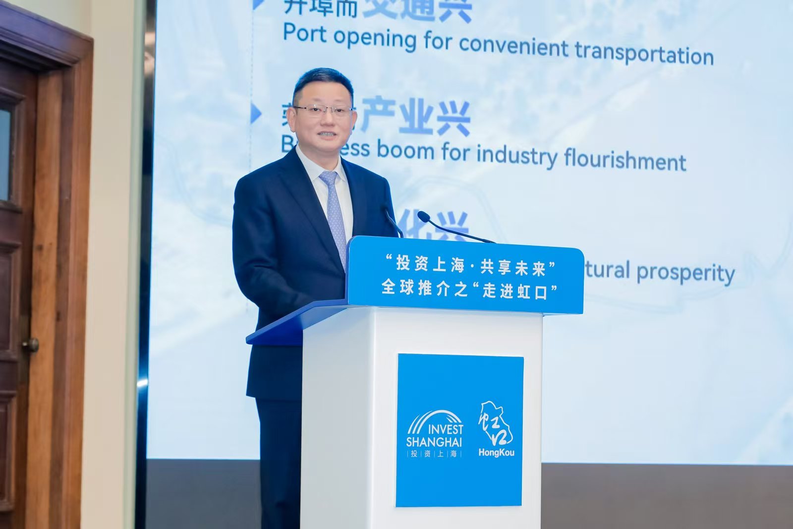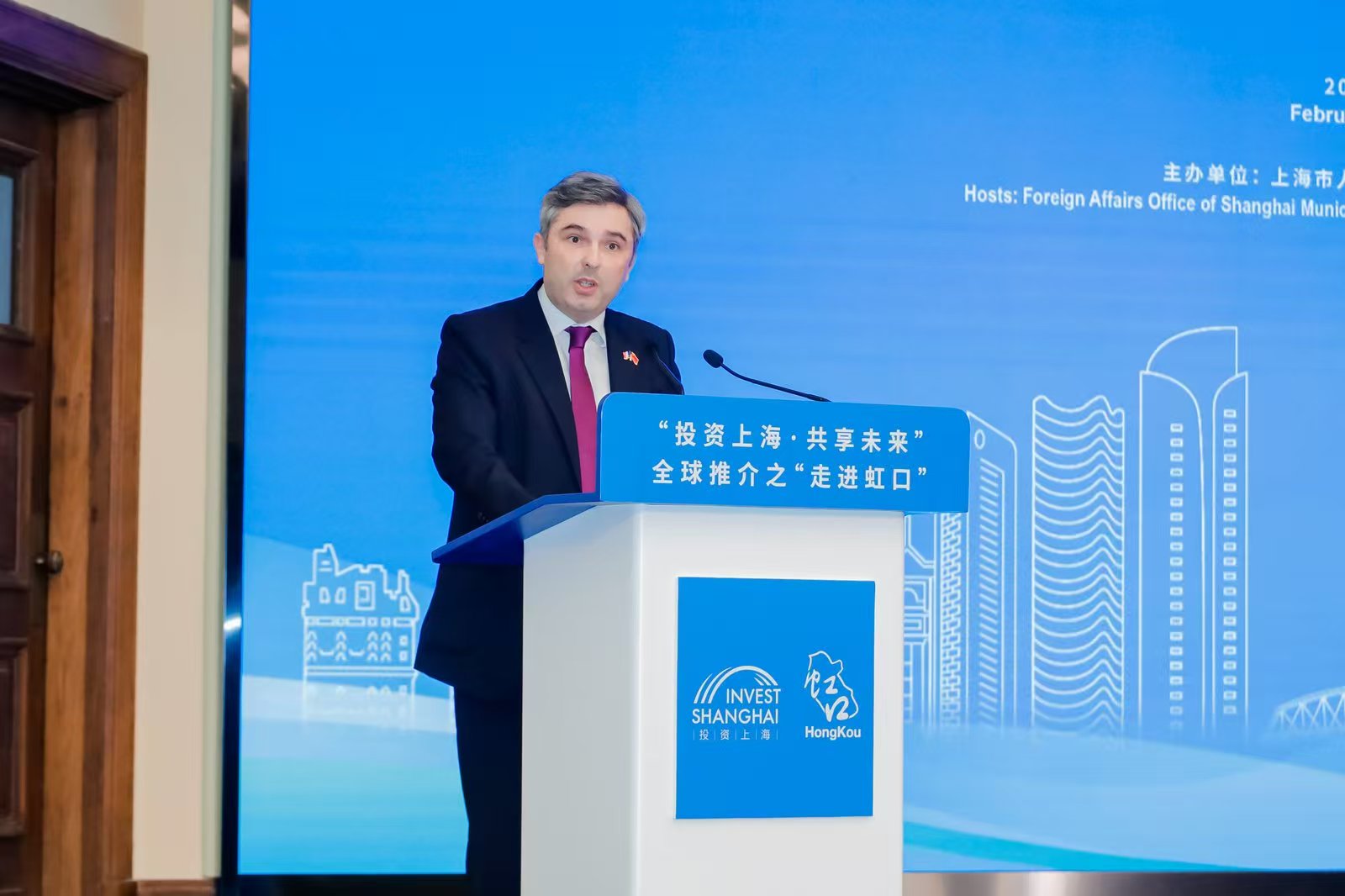 上海市政府外辦主任孔福安,虹口區委書記李謙,法國駐滬總領事王度出席活動並致辭,虹口區委副書記、區長呂鳴作主旨推介。
