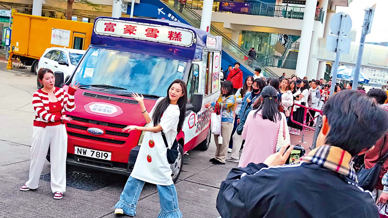近年在社交媒體的帶動下,富豪雪糕車更成為旅客來港的打卡熱點,有旅客表示「見到富豪雪糕,就知道來香港了」。富豪雪糕車沒有固定的停泊時間表,近年在遊客區較容易見到它的蹤跡。昨日傍晚,大公報記者在中環摩天輪附近找到富豪雪糕車,正在照常營運,目測現場有近40人在排隊購買雪糕,近八成是旅客。