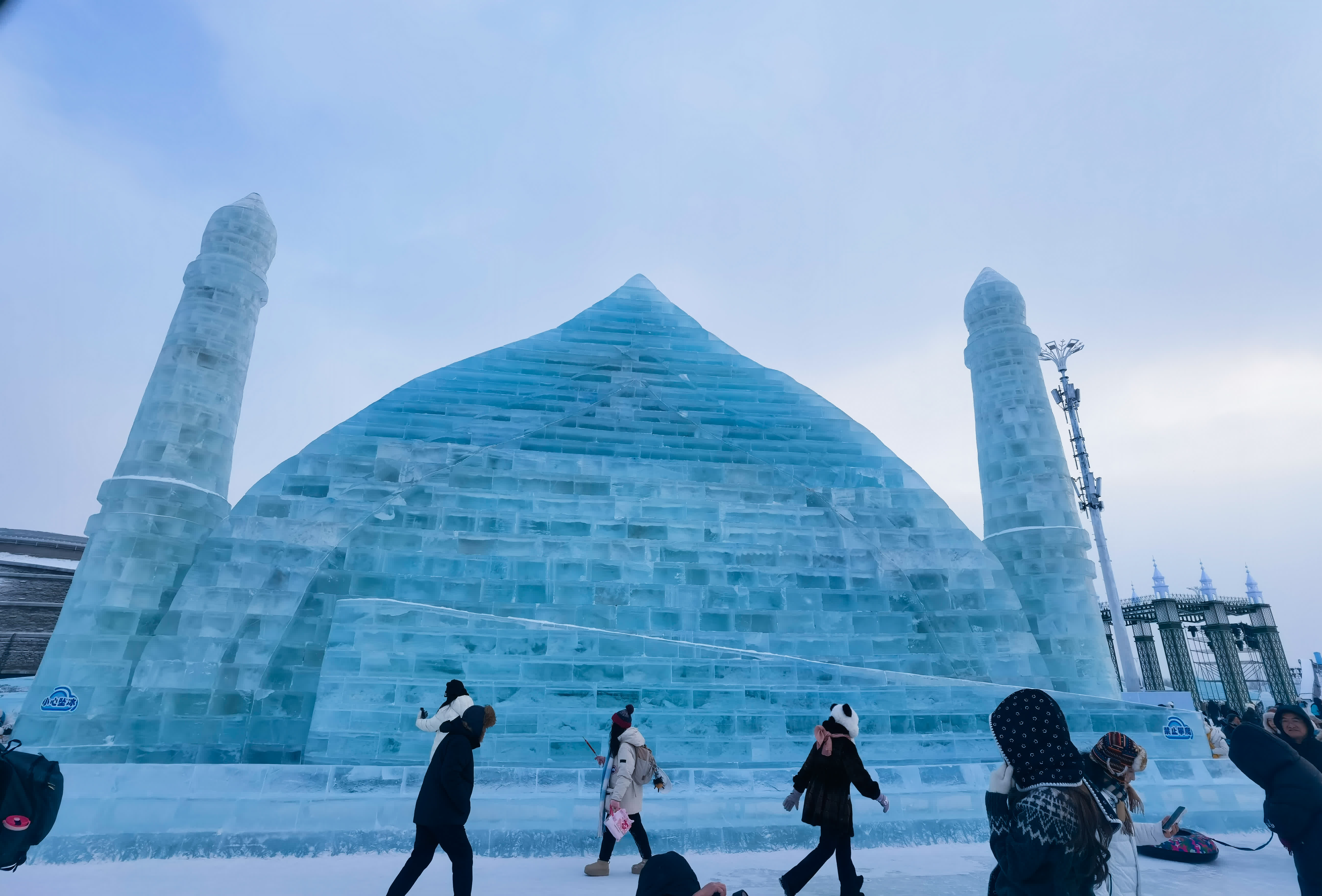 哈爾濱冰雪大世界也是第九屆亞洲冬季運動會(亞冬會)開幕式的分會場,這座冰雕由此吸引了全球目光。