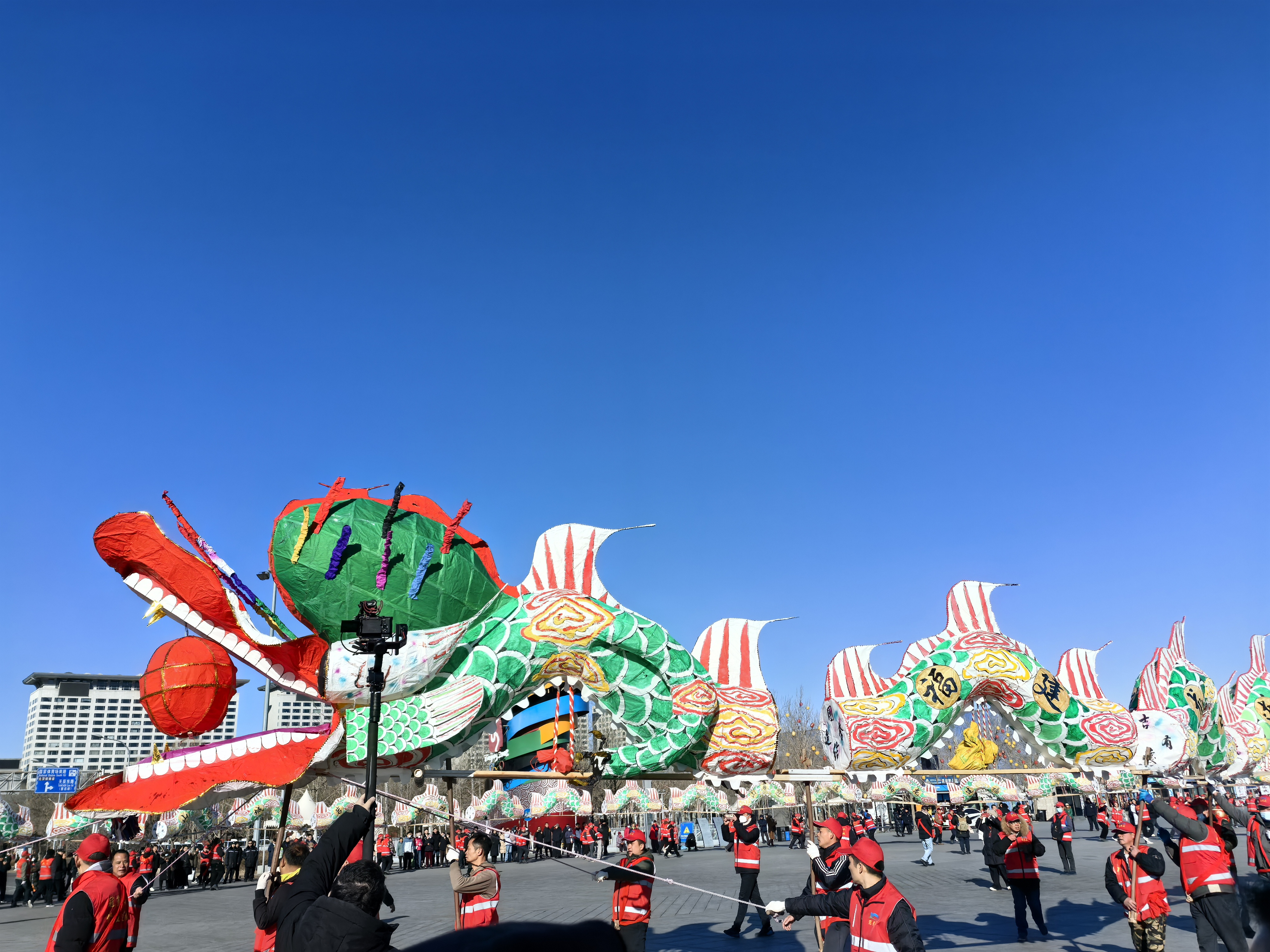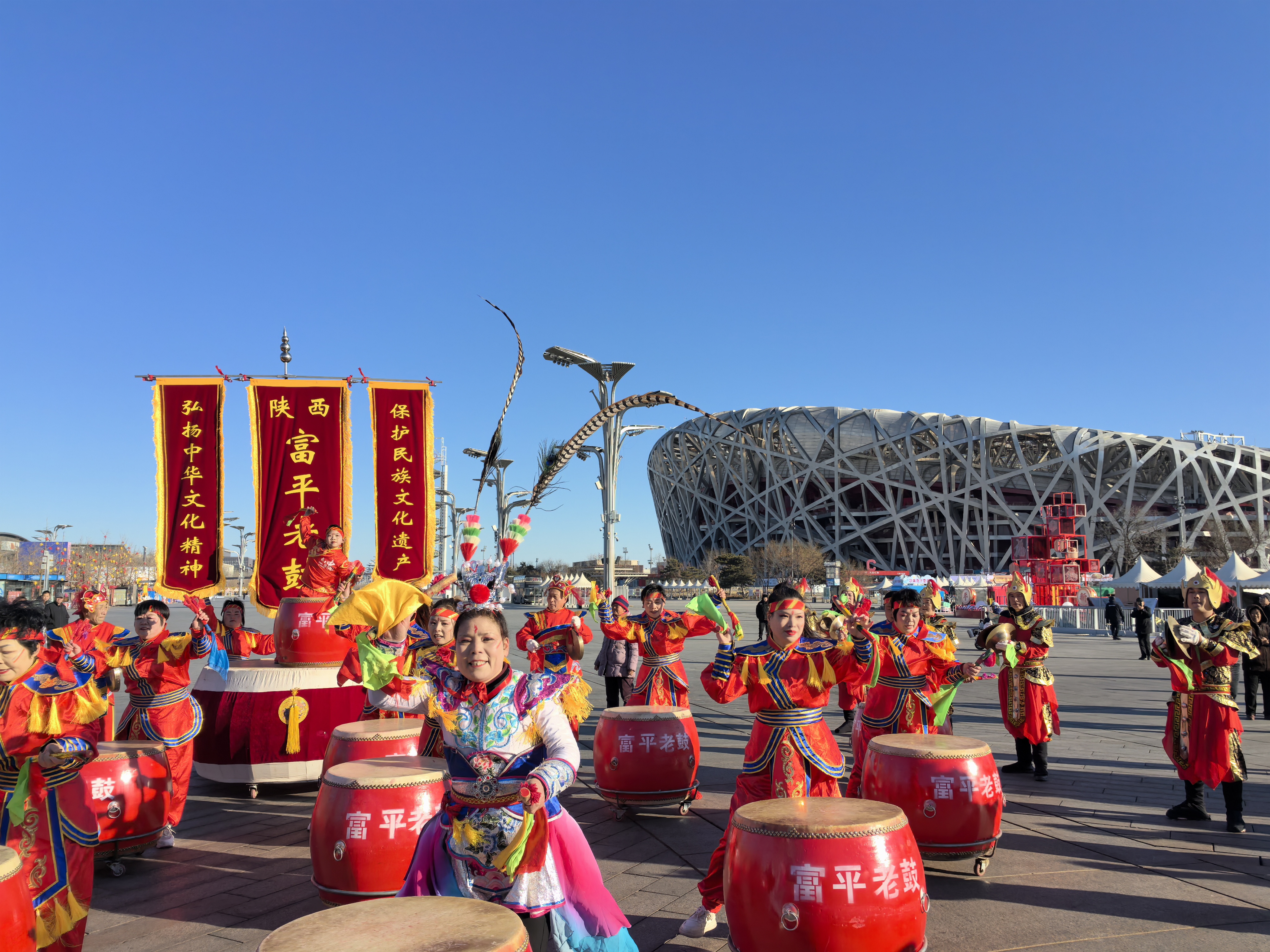 (大公文匯網 記者 馬曉芳 北京報道)為慶祝北京中軸線和春節申遺成功後的首個春節,2025「京彩中軸線 非遺過大年」系列非遺特色春節慶祝活動在北京中軸線之上輪番亮相。正月十五(12日)元宵節一大早,非遺展演巡遊活動便在奧林匹克公園北頂娘娘廟至鳥巢南廣場一線熱鬧舉行,北京的獅舞(白紙坊太獅)、浙江的龍舞(浦江板凳龍)、福建的閩西客家元宵節慶(連城姑田遊大龍)和陝西的老廟老鼓匯聚北京中軸線之上,帶來喜慶熱鬧的表演。