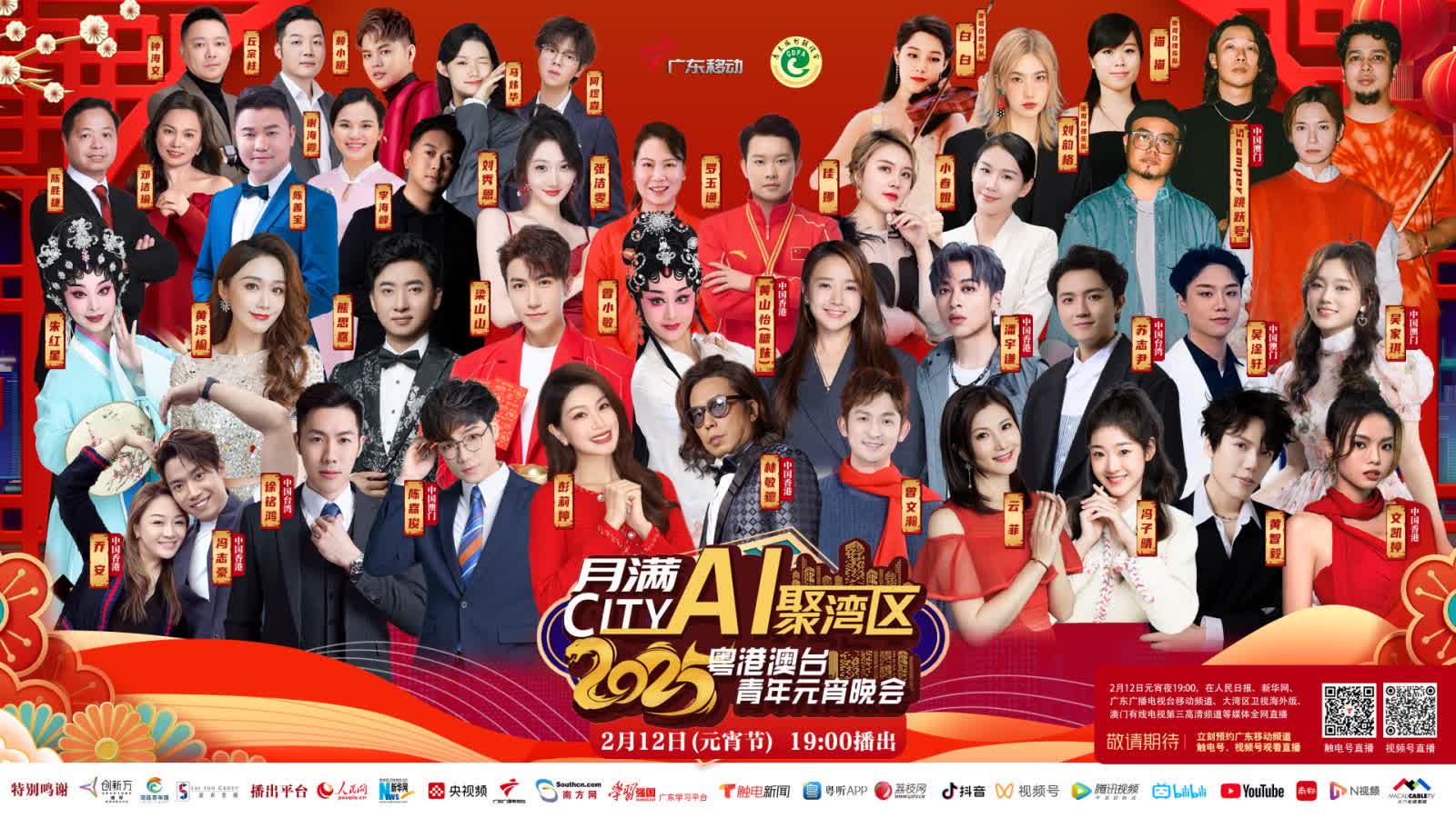 大公文匯全媒體報道,繁燈璨如星,良宵共盛景。「月滿City·Ai聚灣區——2025粵港澳台青年元宵晚會」19:00於大公文匯網網站及微博全程直播。