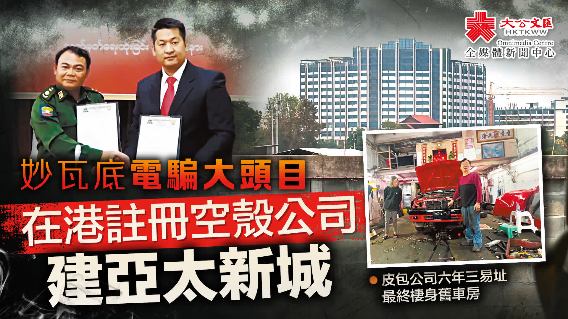 (香港文匯報 記者 廣濟)緬甸妙瓦底的亞太新城無視泰國斷電措施,自組發電機舉辦2025年春節晚會,氣焰之囂張令人側目。香港文匯報記者近日調查發現,這個作為多個電騙團夥溫床的亞太新城,主要開發商的母公司是在港註冊的香港亞太國際控股集團(下稱香港亞太),唯一股東正是惡名昭彰的KK園區電騙首腦之一佘智江。記者調查後發現,香港亞太疑是一間空殼公司,曾多次更換公司秘書,在港最後登記的辦事處竟是一間毫不起眼的車房。車房職員稱不認識香港亞太及佘智江,但不諱言老闆將車房地址借予多間公司作註冊之用。另一邊廂,全球非法活動常用的加密貨幣泰達幣,其發行公司及母公司亦在港註冊。