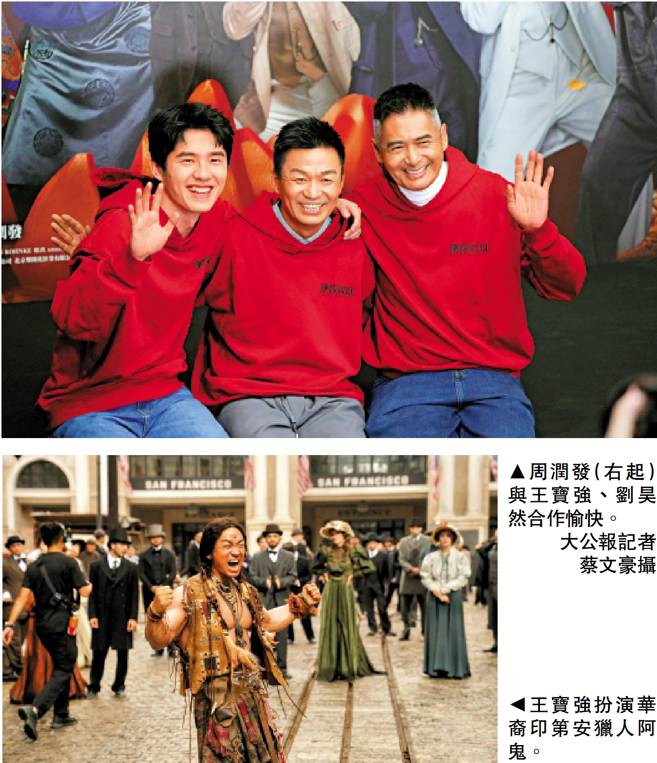 (大公報 記者 溫穎芝)內地票房大收超過29億人民幣的賀歲片《唐探1900》今天在香港正式上映,導演陳思誠、戴墨,主演王寶強、劉昊然及周潤發,近日忙於為電影宣傳。一眾主創人員接受訪問,分享拍戲趣事及感受。