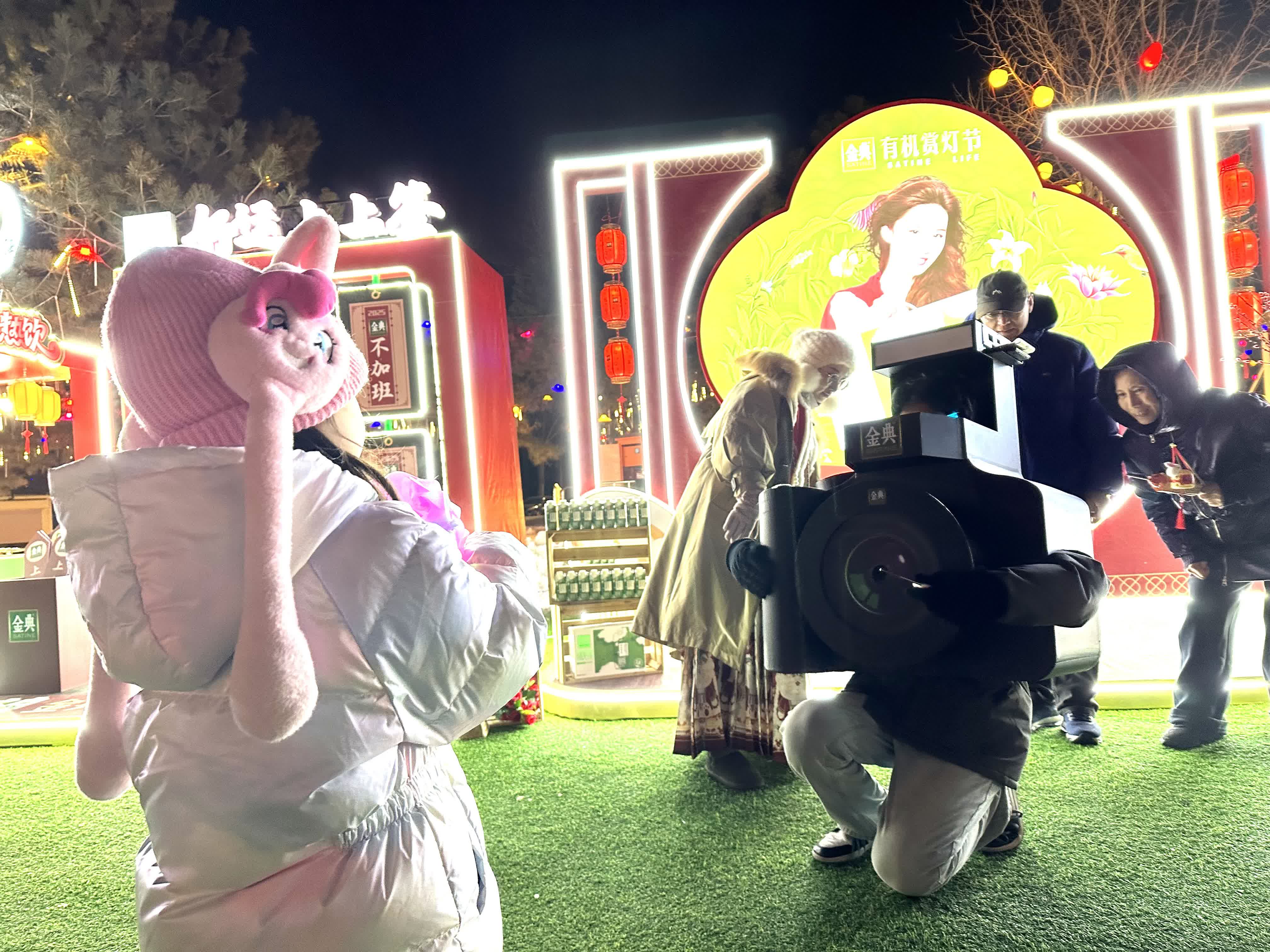 在本次燈會的伊利金典互動區,遊客在體驗猜燈謎、抽取好運上上籤的同時,還能感受到新科技帶來的全新體驗。一台可穿戴的AI照相機吸引了眾多遊客駐足體驗,通過拍照眼鏡,遊客的現場照片可實時傳送到智能照相機中,與古風漢服巡遊合影、與非遺面人作品合影、與非遺剪紙合影……一個個別具特色的體驗傳統文化瞬間被精彩捕捉。