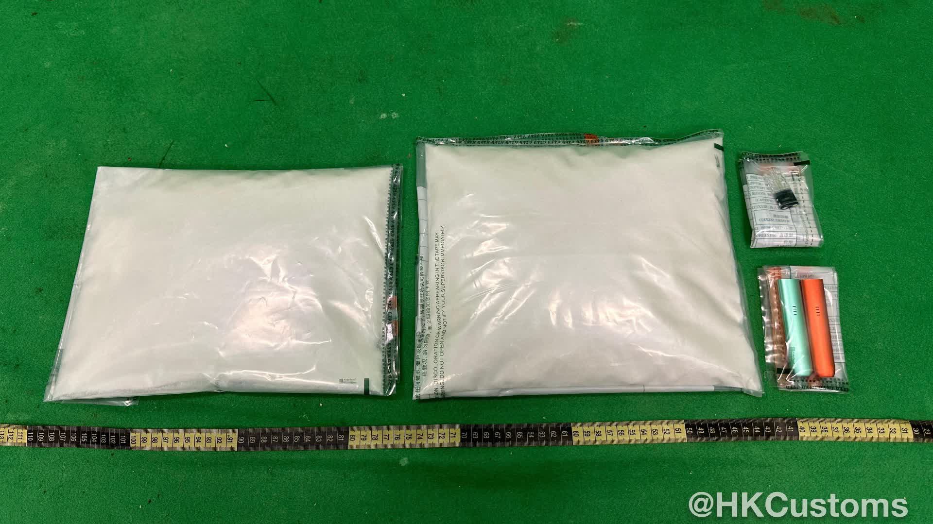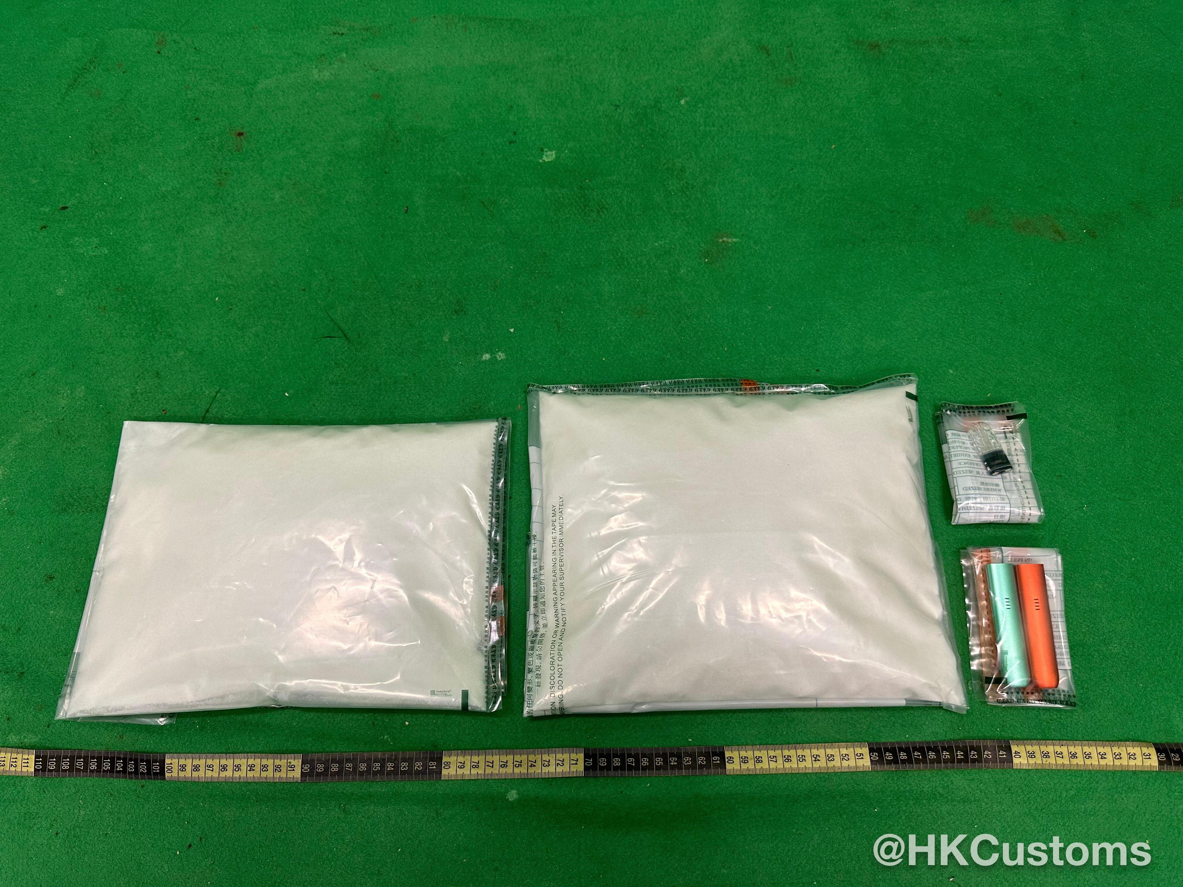 第一宗案件中,香港海關人員於一月八日在香港國際機場檢查一件從馬來西亞運抵本港的無人認領行李時,在行李內一個手提袋及一盒食物包裝中發現該批「太空油毒品」。