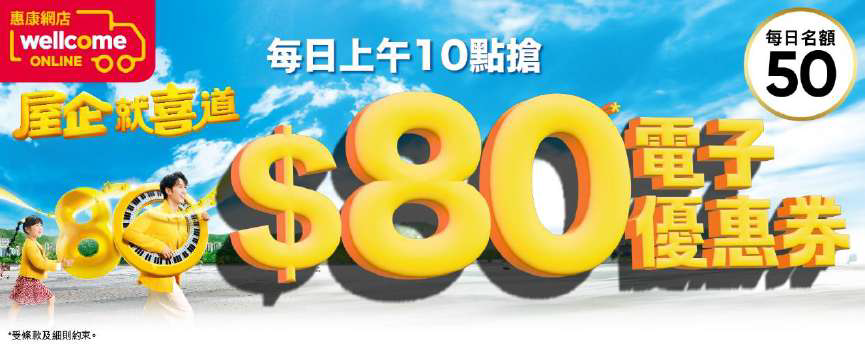 每日搶惠康網店$80電子優惠券