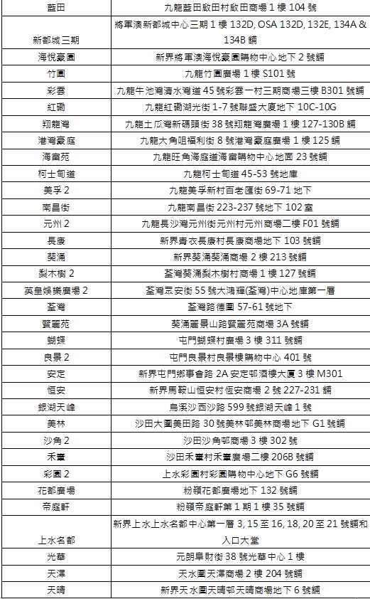 2月14日派發8,000個西蘭花,及發售原箱智利大裝車厘子的50間指定分店: