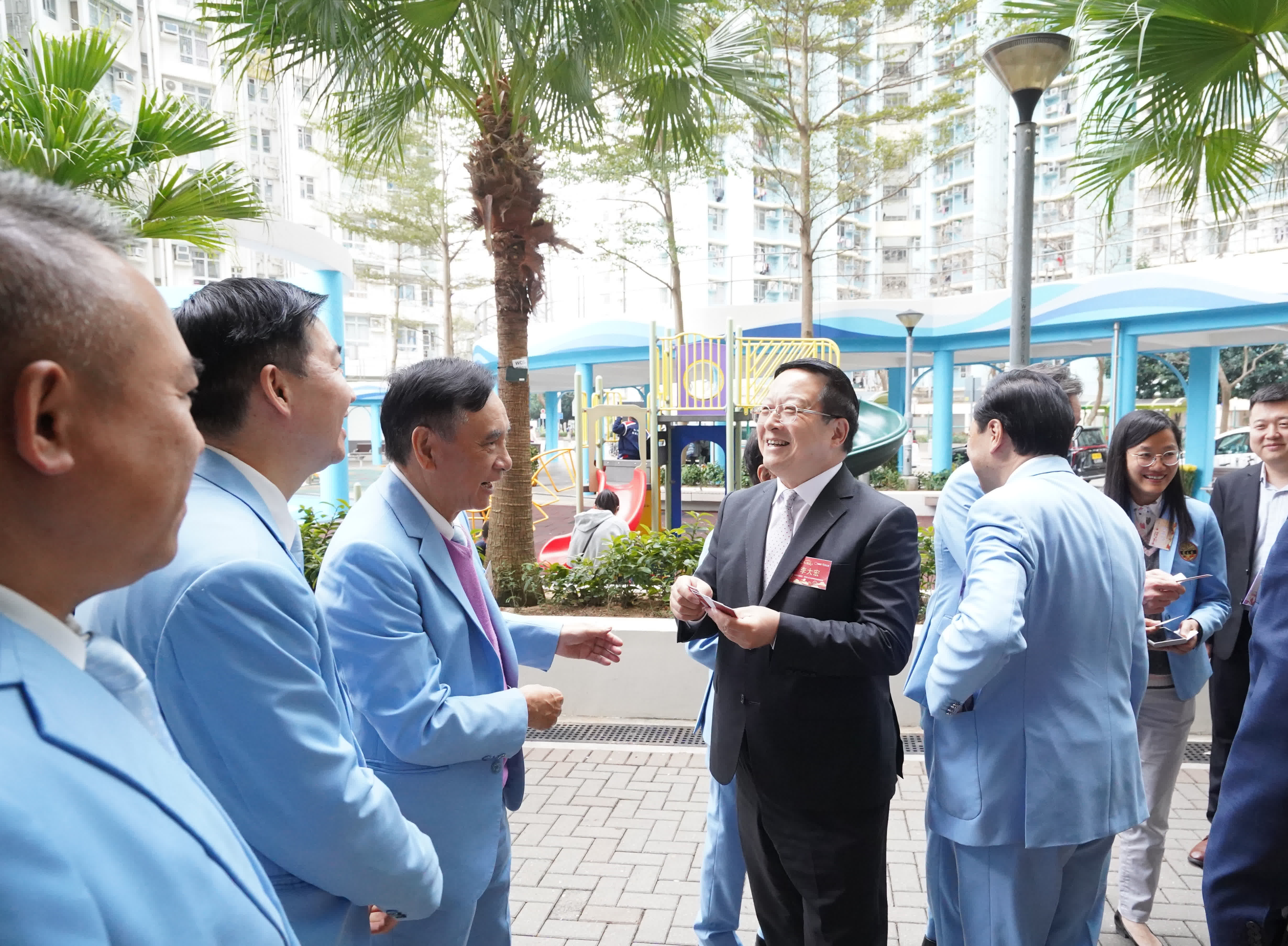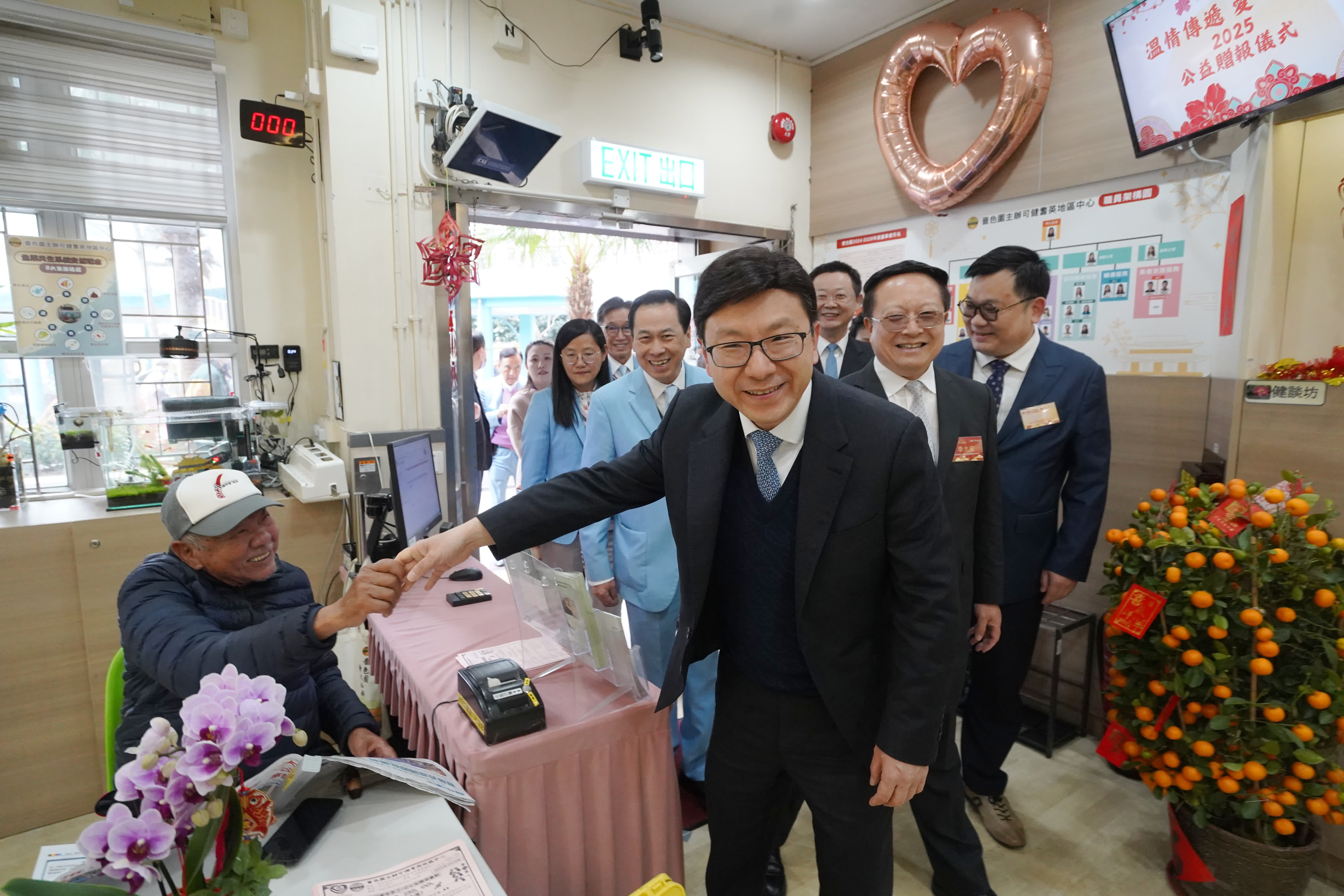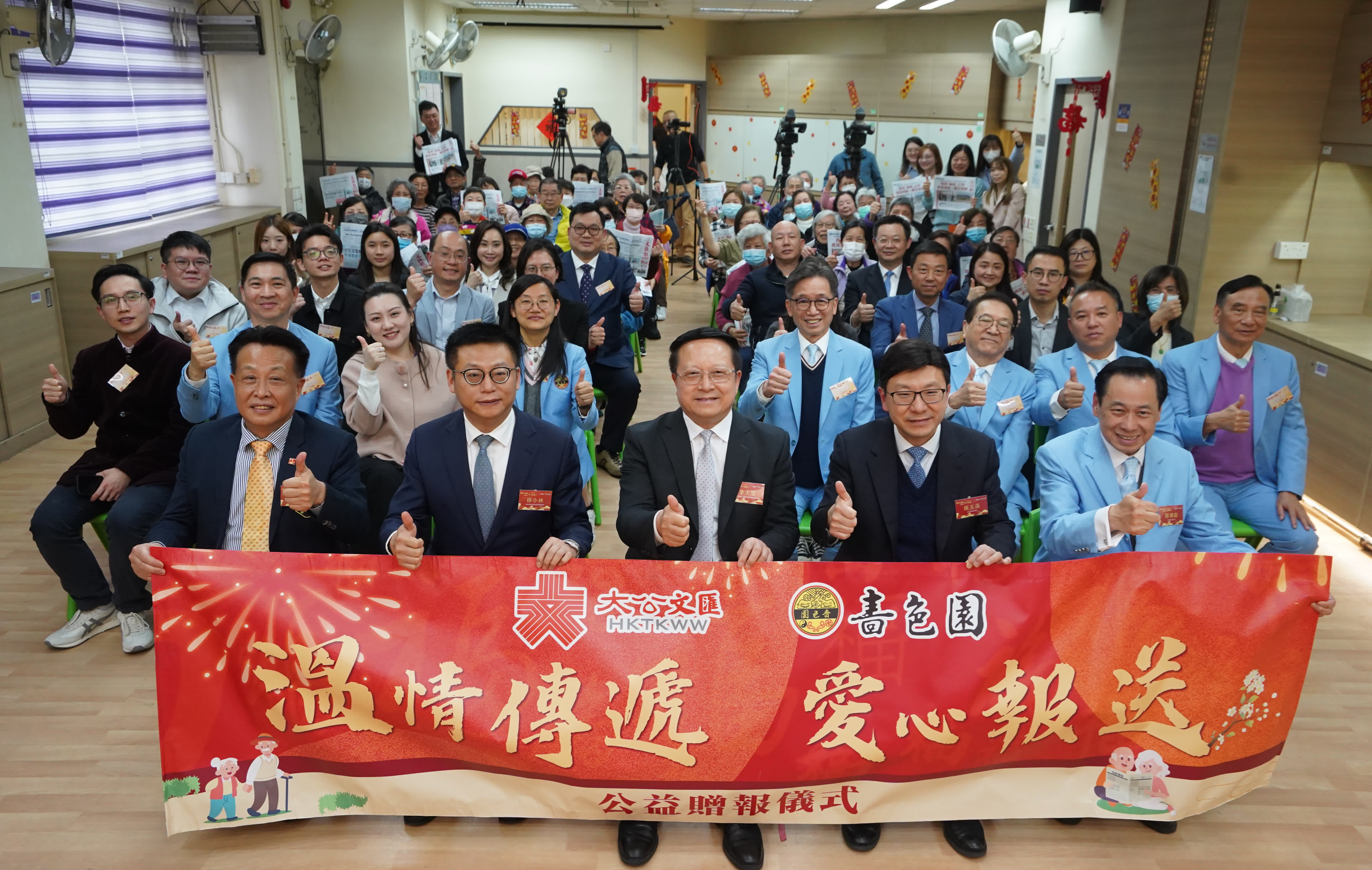 全國政協委員、香港大公文匯傳媒集團董事長兼大公報社社長、香港文匯報社社長李大宏,勞工及福利局局長孫玉菡,嗇色園董事會主席黎澤森等出席主禮並致辭,中央人民政府駐港聯絡辦協調部負責人、香港道教聯合會副主席陳勇生以及受贈機構保良局、亞洲婦女協進會等6家代表出席儀式。