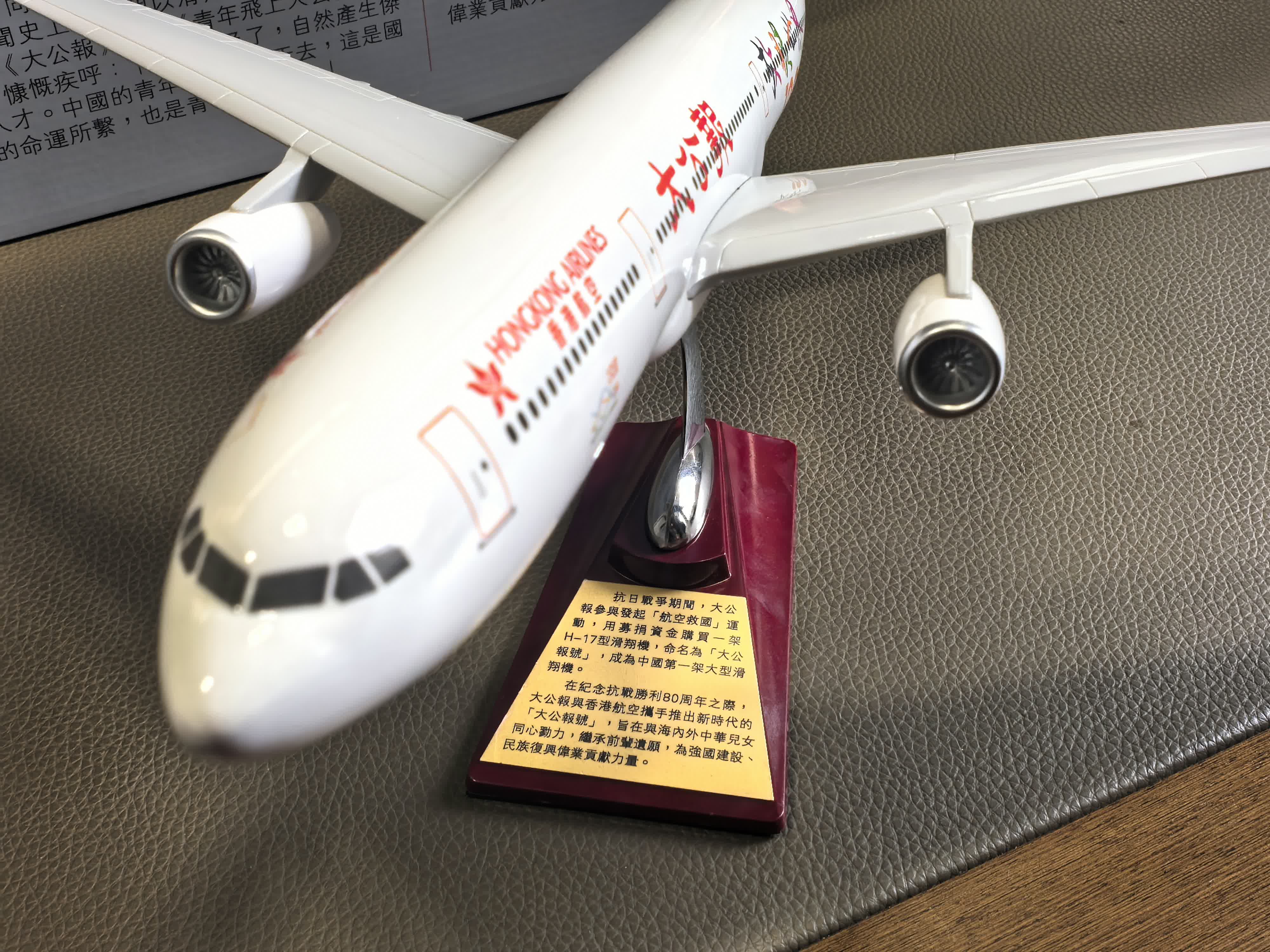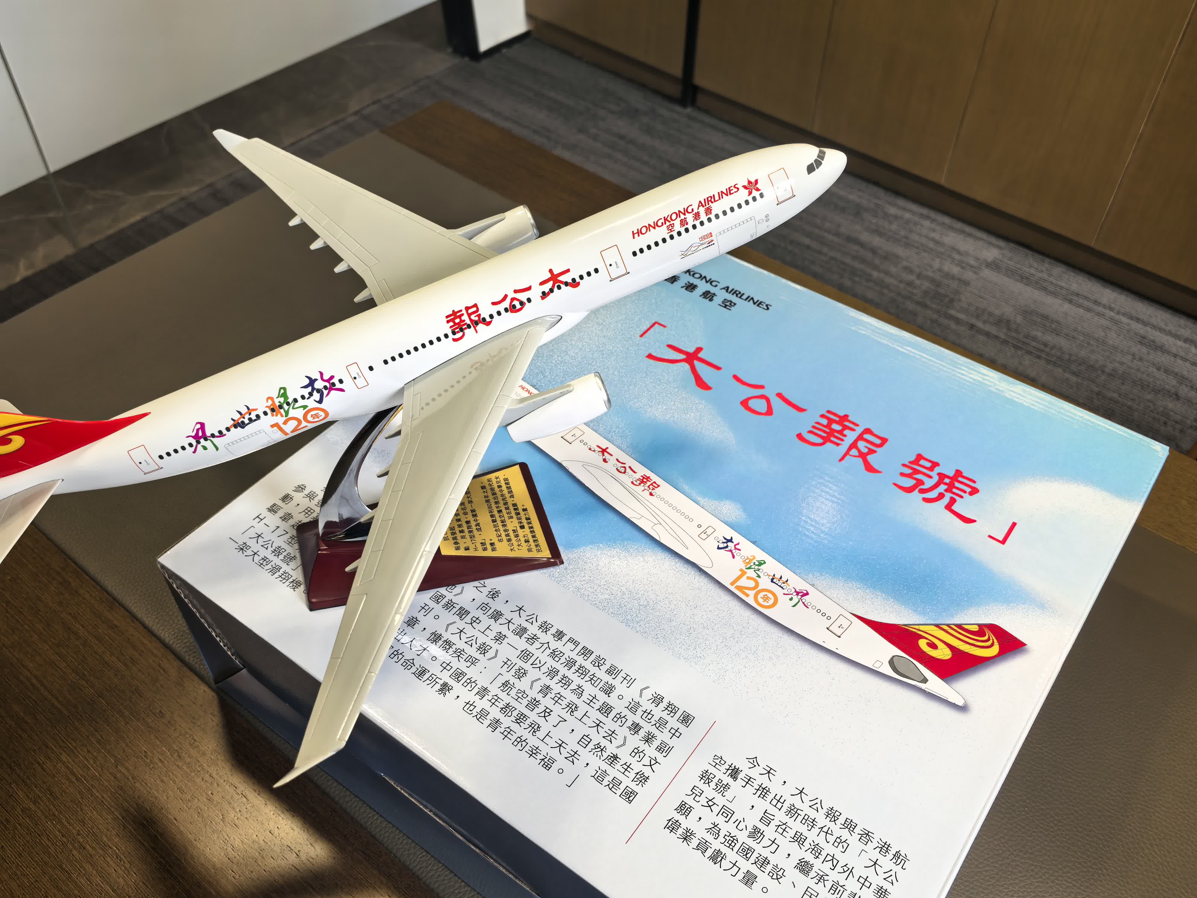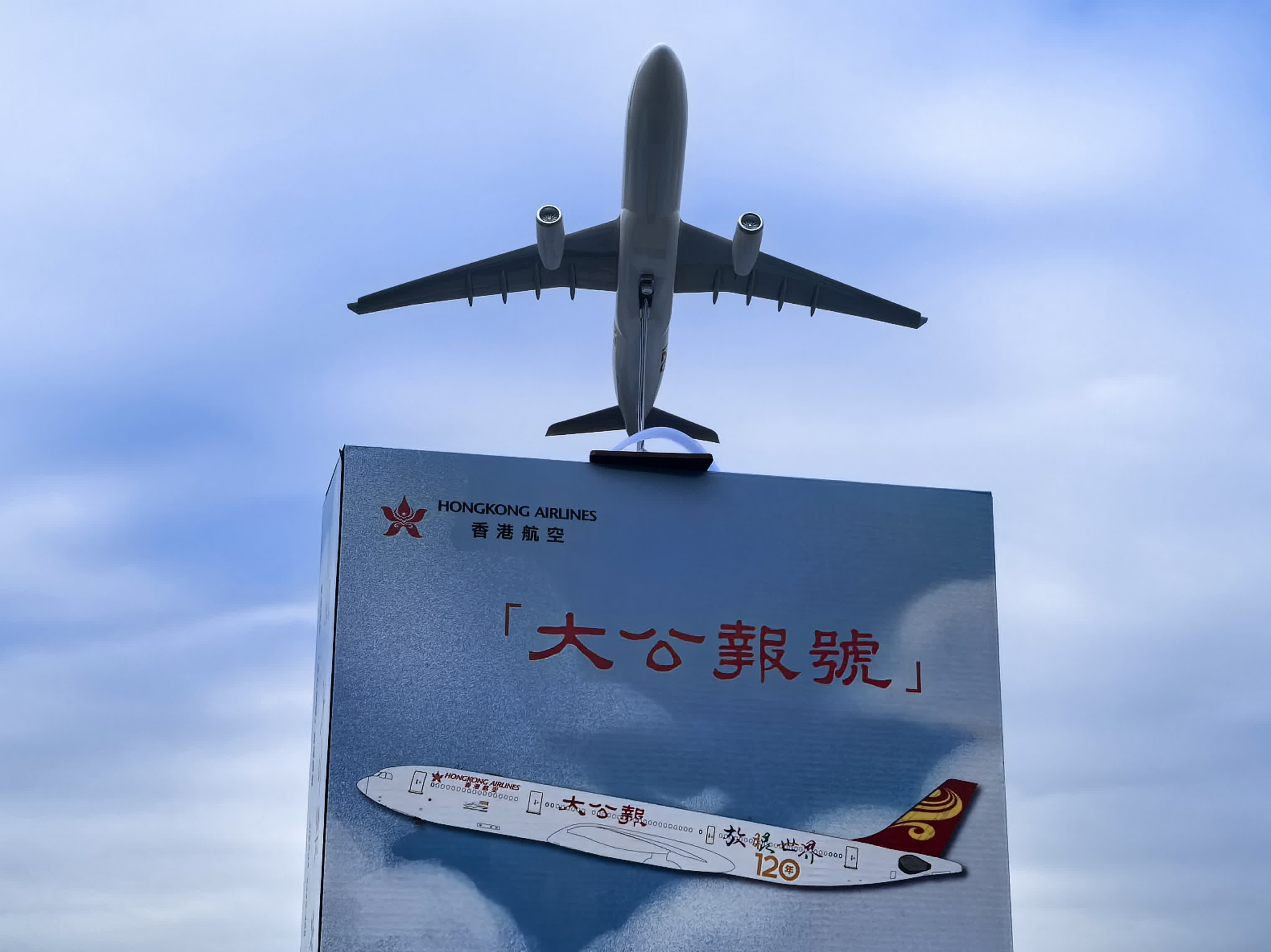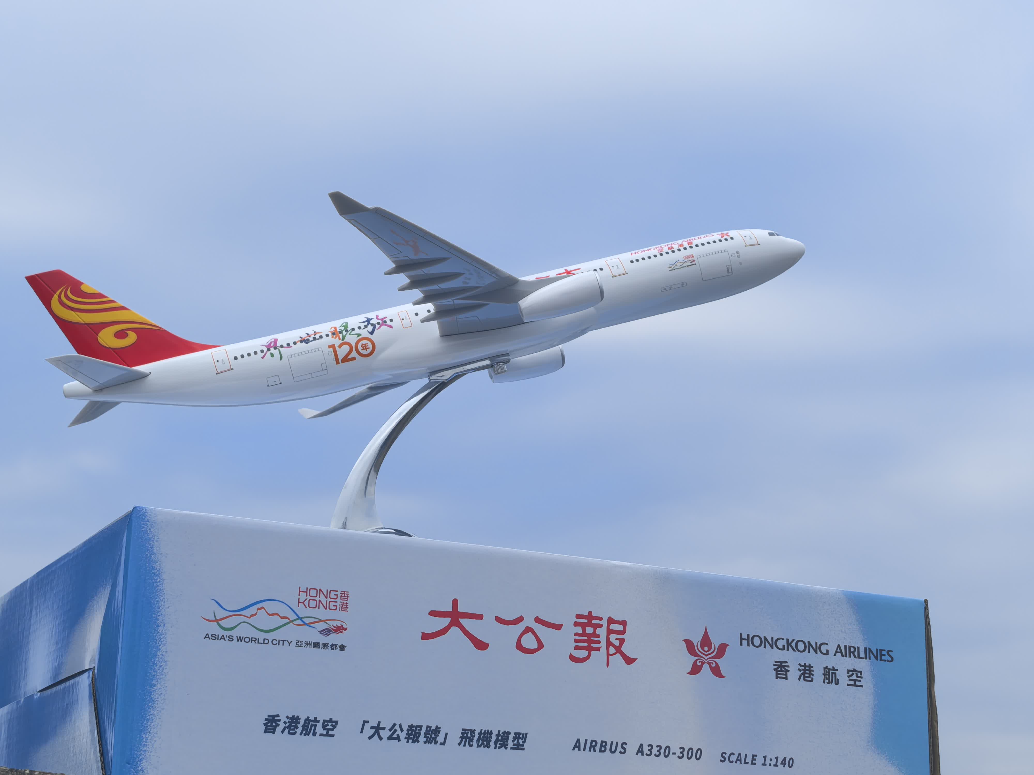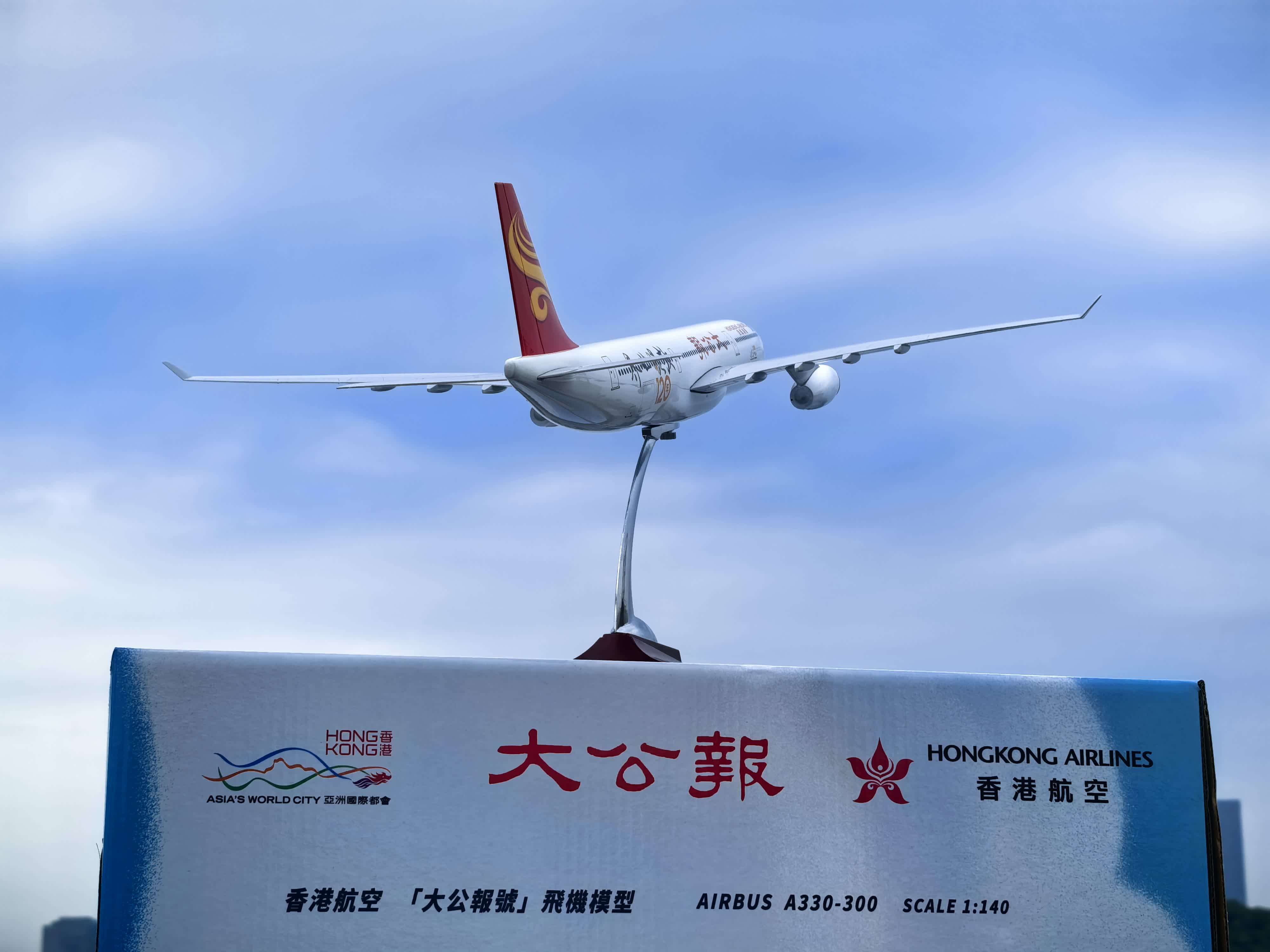 「大公報」號航模型號為Airbus A330-300,按照1:140的比例完美複製,航模機頭噴塗香港航空標識,並輔以「亞洲國際都會」香港品牌的飛龍線條,機身噴塗「大公報」標識。