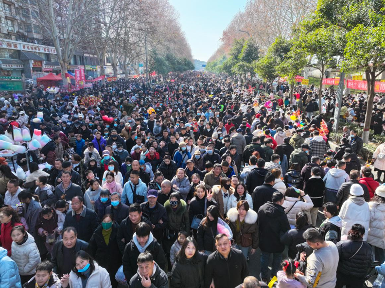 地道的安陽特色小吃也是廟會的一大亮點。餄餎面、炸血糕、煎灌腸等數十種風味小吃攤位依次排開,香氣四溢,市民穿梭其間,品嘗着各種美食,臉上洋溢着滿足的笑容。「來一碗餄烙面,多放點蒜!」、「來兩份煎灌腸,一份血糕……」攤販們忙碌的身影和市民歡快的交談聲交織在一起,構成了一幅生動的市井畫卷。