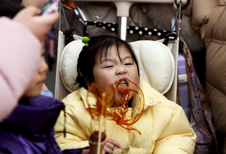 除了美食的誘惑,廟會上的傳統民俗表演和手工藝品同樣令人目不暇接。糖畫藝人用靈巧的雙手在石板上勾勒出栩栩如生的圖案,有威武的獅子、靈動的鳳凰,還有活潑的孩童,每一幅作品都蘊含着美好的寓意。泥咕咕製作者則通過吹制技藝創作出形態各異的小玩意兒,它們或憨態可掬,或靈動可愛,發出「咕咕」的聲響,引得遊客們紛紛駐足欣賞併購買留念。
