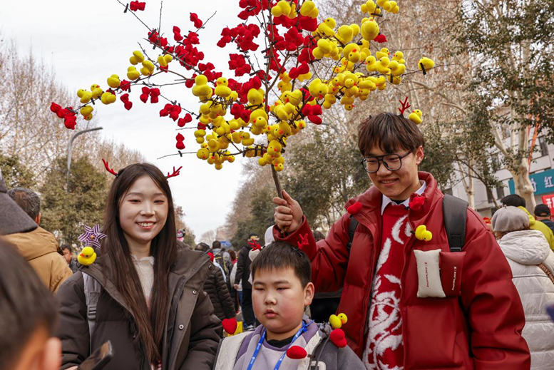 「正月裏來正月正,正月十六打花燈,安陽橋上遛百病。」這句流傳已久的民謠,道出了安陽橋廟會的獨特魅力。2月13日一大早,家住文峰區的李愛國推着年過八旬的老父親,緩緩步入廟會現場。他們手持折下的柏枝,寄託着對家人健康長壽的美好祝願。「柏」與「百」諧音,寓意着遛走百病,帶來幸福。李愛國說:「逛廟會是安陽人的傳統習俗,今天特地帶着父親來感受一下這份熱鬧和喜慶。」