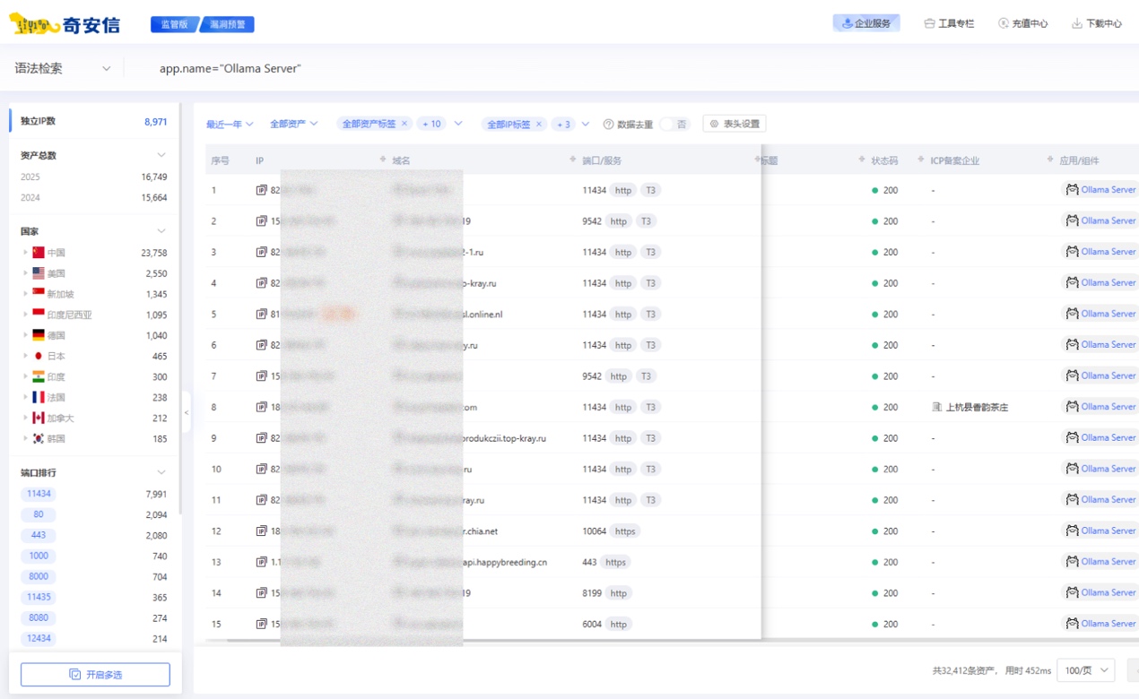 (大公文匯網記者 馬曉芳 北京報道)記者14日從奇安信獲悉,隨着DeepSeek大模型的迅速流行,越來越多的公司和個人選擇將該開源大模型私有化部署。奇安信資產測繪鷹圖平台監測發現,8971個Ollama大模型服務器中,有6449個活躍服務器,其中88.9%都「裸奔」在互聯網上,導致任何人不需要任何認證即可隨意調用、在未經授權的情況下訪問這些服務,有可能導致數據洩露和服務中斷,甚至可以發送指令刪除所部署的DeepSeek、Qwen等大模型文件。