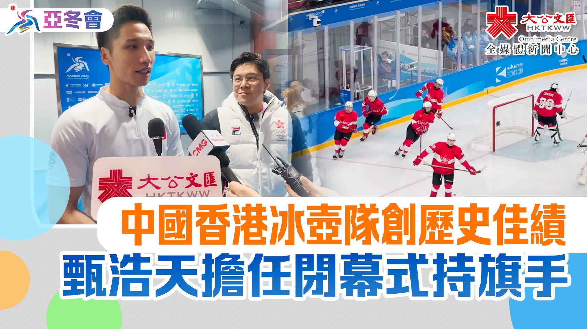 大公文匯全媒體報道,第九屆亞洲冬季運動會今晚(14日)閉幕。中國香港代表團團長霍啟剛宣布,亞冬會閉幕式中國香港代表團持旗手將由冰壺運動員甄浩天擔任。本屆亞冬會,中國香港男子冰壺隊首次參加國際綜合賽事,就打入四強。雖然在銅牌戰中不敵國家隊獲殿軍,仍實現歷史性突破。
