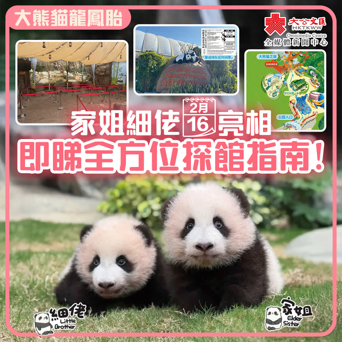 大公文匯全媒體報道,全城期待!2月16日,大熊貓龍鳳胎「家姐」和「細佬」終於要和大家見面啦!