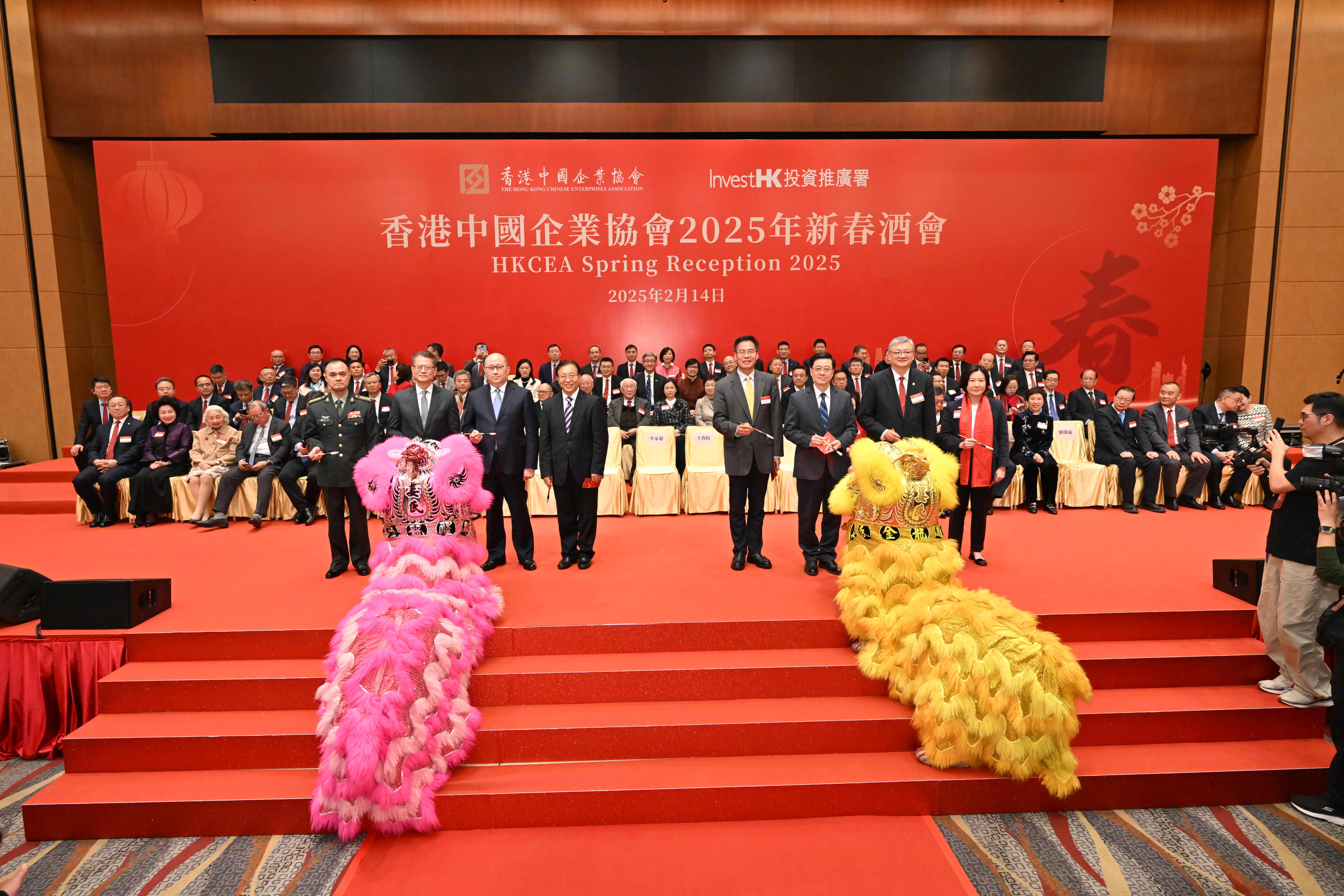行政長官李家超、中央人民政府駐香港特別行政區聯絡辦公室主任鄭雁雄、投資推廣署署長劉凱旋和香港中國企業協會會長王海民出席是次酒會。