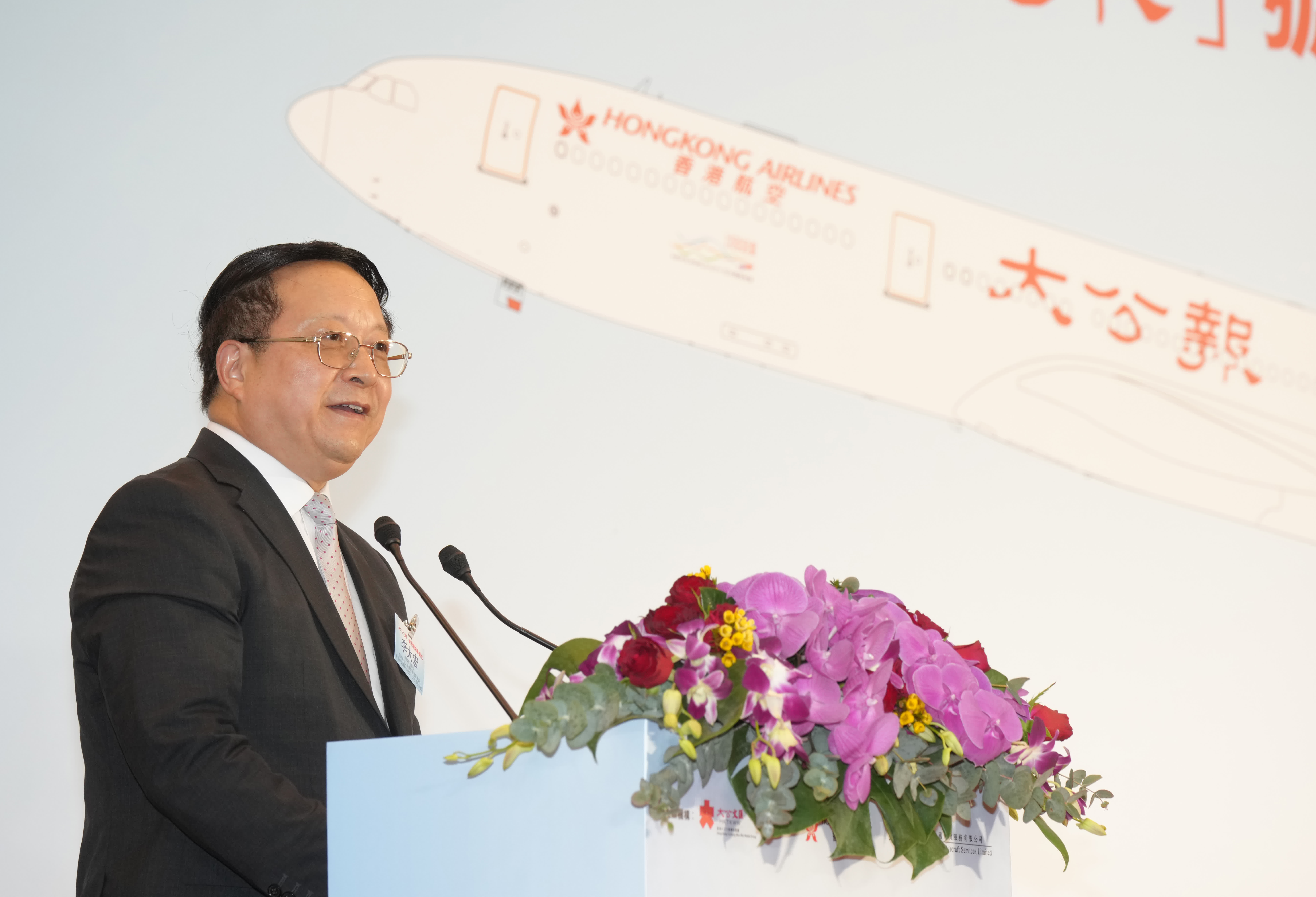 全國政協委員、香港大公文匯傳媒集團董事長兼大公報社社長、香港文匯報社社長李大宏在致辭中指出,從抗戰時期的「大公報」號到新時代的「大公報」號,其中濃縮了億萬中華兒女從爭取國家獨立、民族解放到致力於大國崛起、民族復興的苦難輝煌,彰顯了國家在航空事業上的巨大飛躍。曾經,我們連滑翔機都要從外國購買,而現在我們已經成功試飛令世人驚嘆的第六代戰機;國產大飛機C919投入商業運營,則毫無爭議地奠定了我國與美歐在民航市場上三足鼎立的地位。香港作為全球最重要的航空樞紐之一,香港航空作為香港第二大航空公司,在推動國家航空運輸業高質量發展、對外高水平開放方面,扮演着不可或缺的重要角色。
