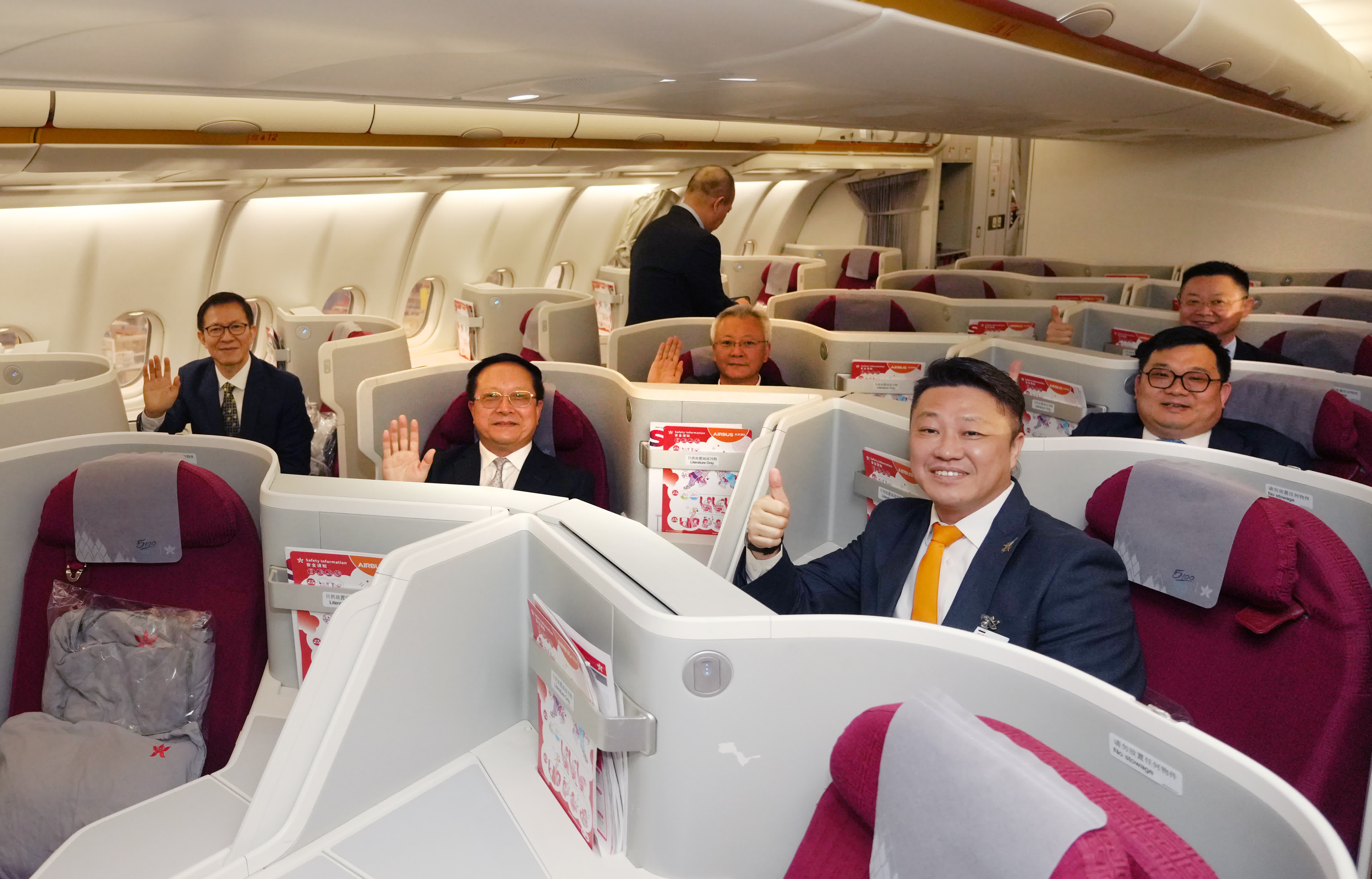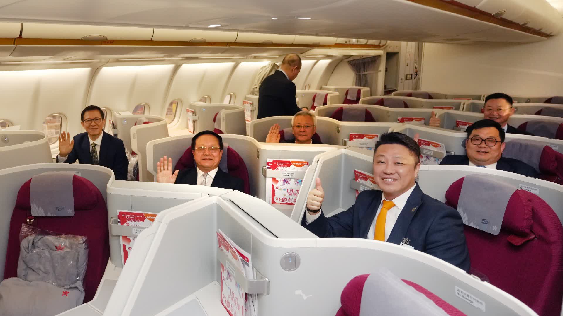 放眼世界,翱翔天際。「大公報」號飛機執飛國際航線,一眾嘉賓昨日在飛機上體驗,「先坐為快」。
