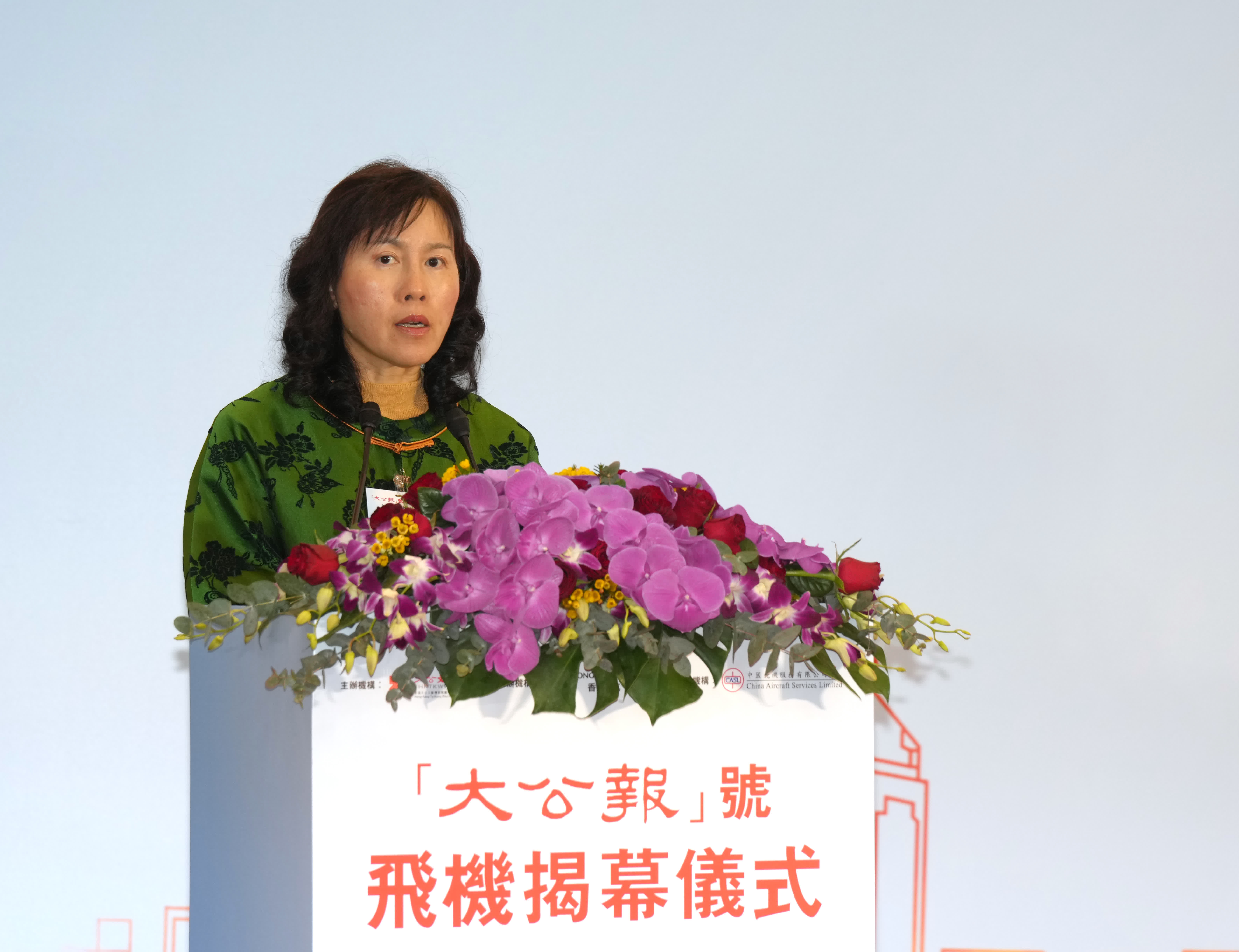 陳美寶致辭指出,「大公報」號不僅是一架飛機,更是一個跨越歷史的文化符號,展現了中華民族在磨礪中的堅韌精神。她相信,在各方的共同努力下,中國航空業定能迎來更加輝煌的明天,而香港亦將繼續為這一進程作出重要貢獻。