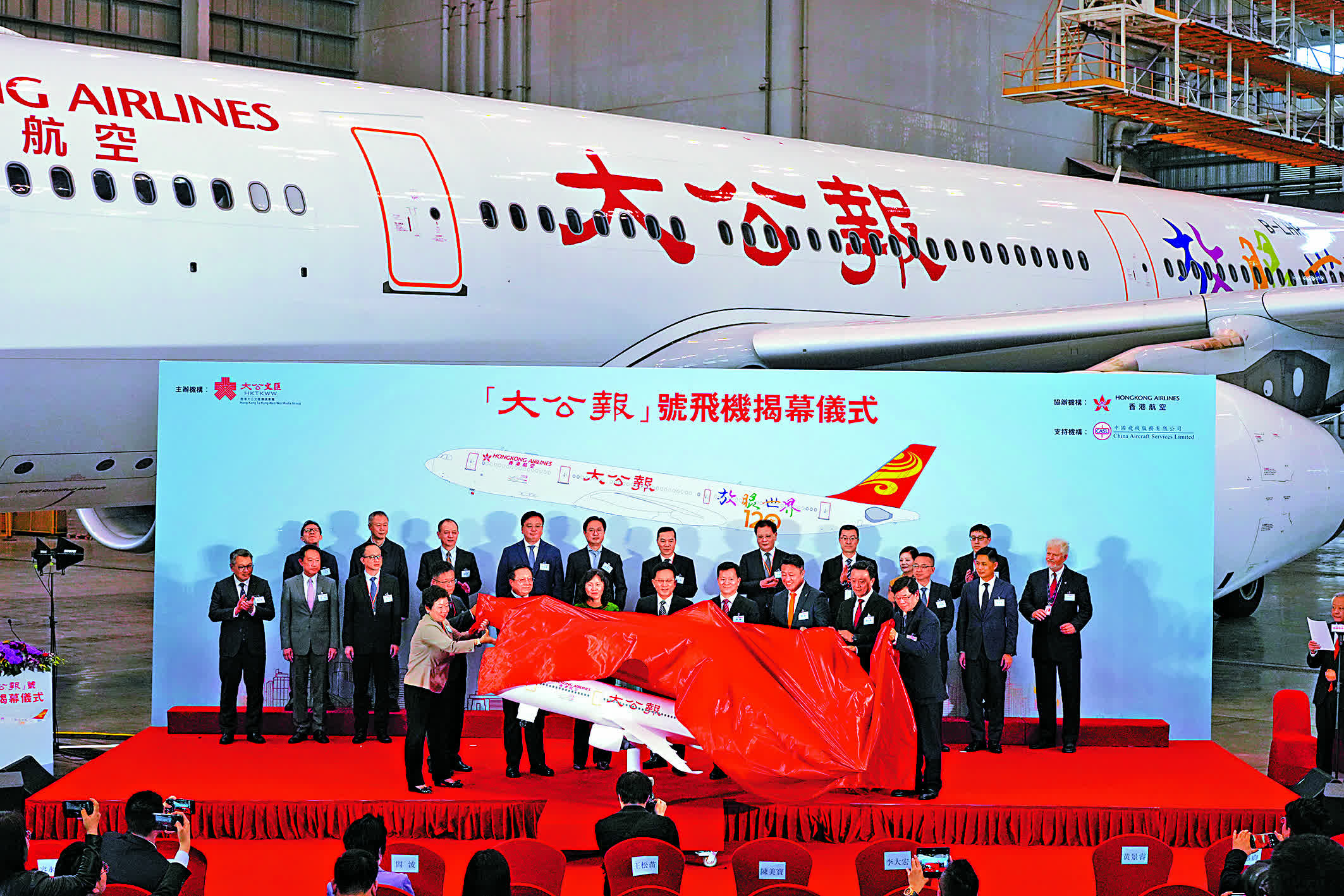 香港航空主席閻波致辭指出,香港大公文匯傳媒集團是目前香港報紙發行量最大的傳媒集團之一,也是愛國愛港的全媒體傳媒旗艦,傳播力和影響力遍及全球。香港航空非常榮幸此次與《大公報》獨家合作,特別通過A330客機上噴塗專屬設計,以此向1939年首架參與航空救國的大型滑翔機「大公報」號致敬,共同打造流動的空中文化大使。「這是對歷史的致敬,更是對未來的展望,充分彰顯香港航空以實際行動詮釋愛國愛港,在特區政府領導下『共同建設美好香港,在強國建設、民族復興偉業中更好發揮作用』的信心和決心。」