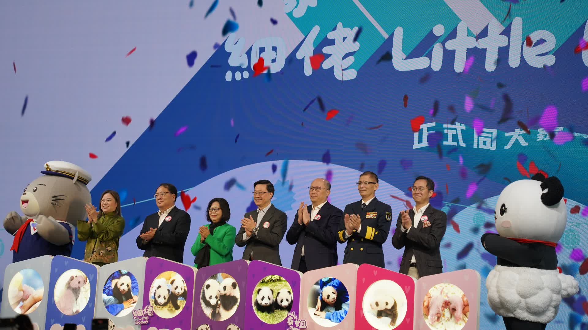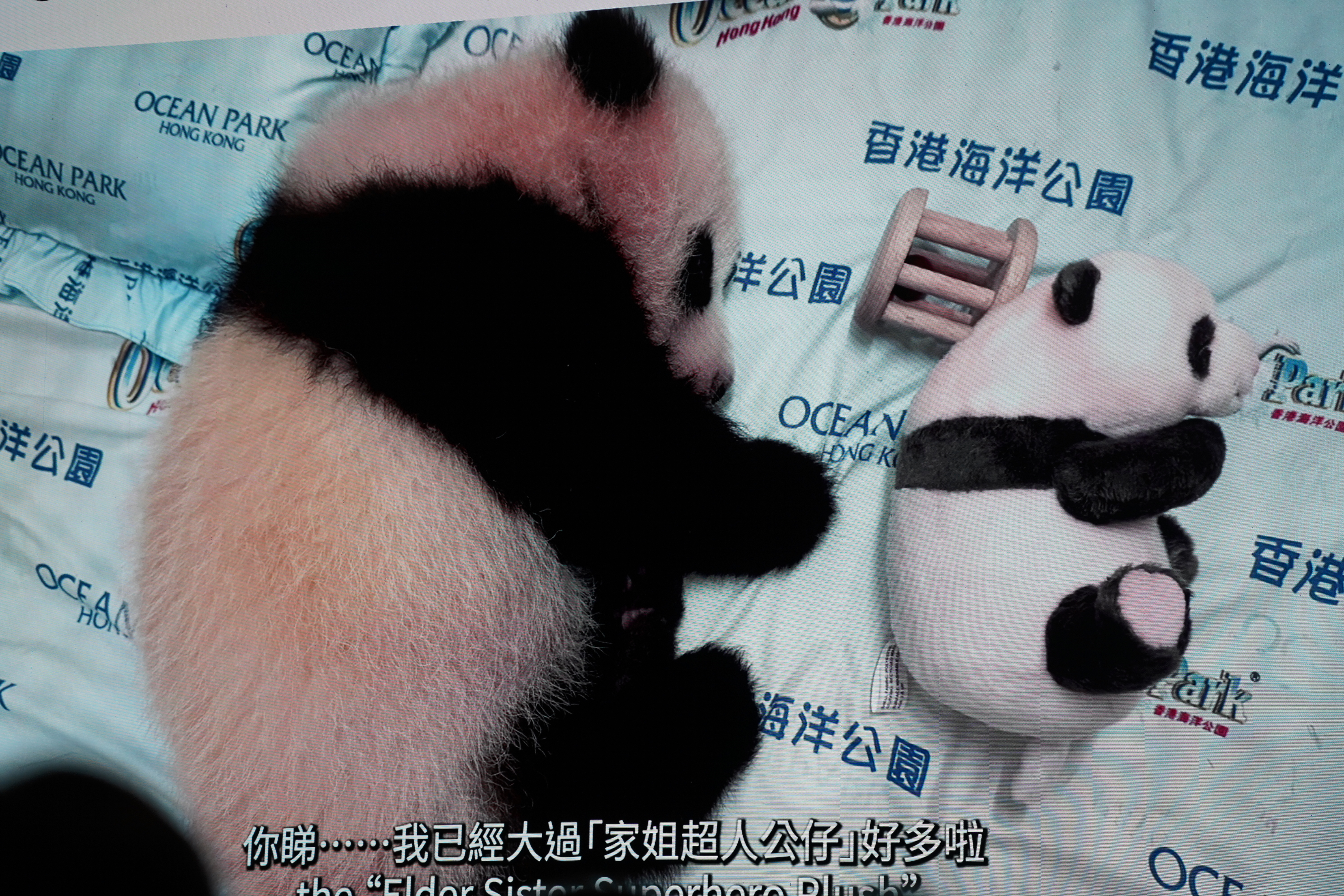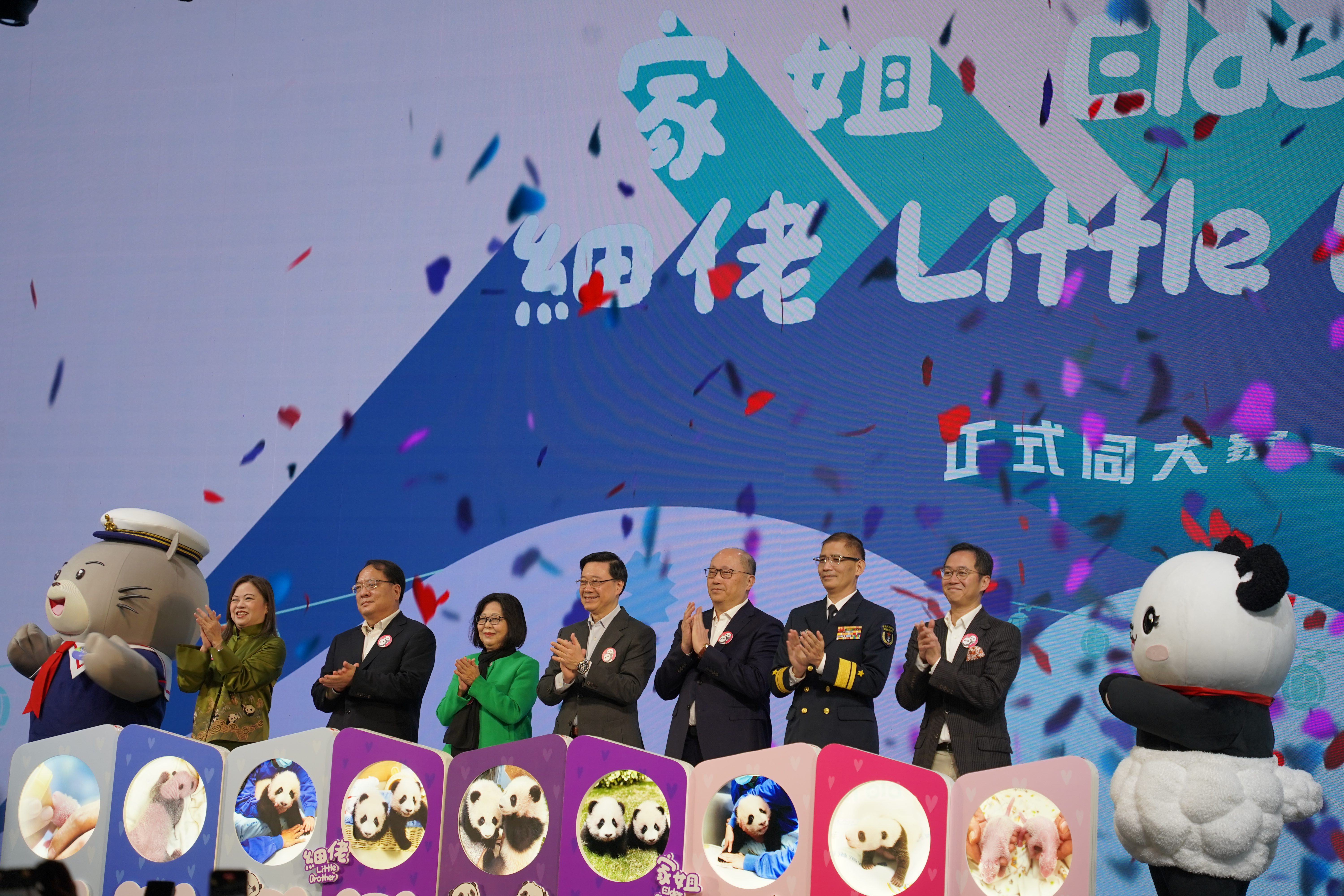 (大公文匯全媒體 記者 周傾芫)海洋公園今日(15日)為大熊貓「盈盈」和「樂樂」所誕下的龍鳳胎「家姐」和「細佬」舉辦亮相儀式,慶祝牠們半歲生日。在這半年的時間裏,專業的大熊貓護理團隊與這對可愛的小傢伙朝夕相處,見證了牠們成長的每一步。