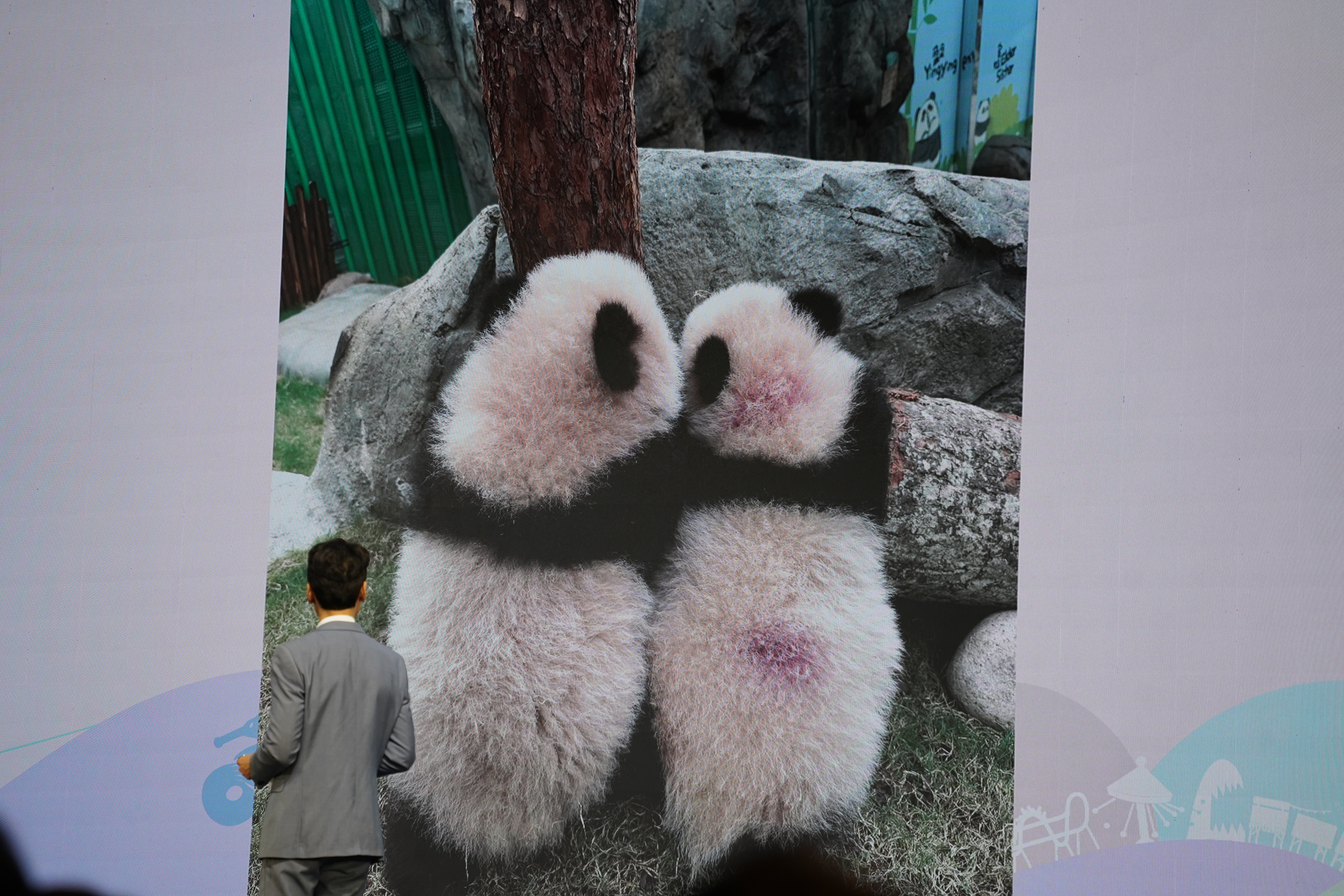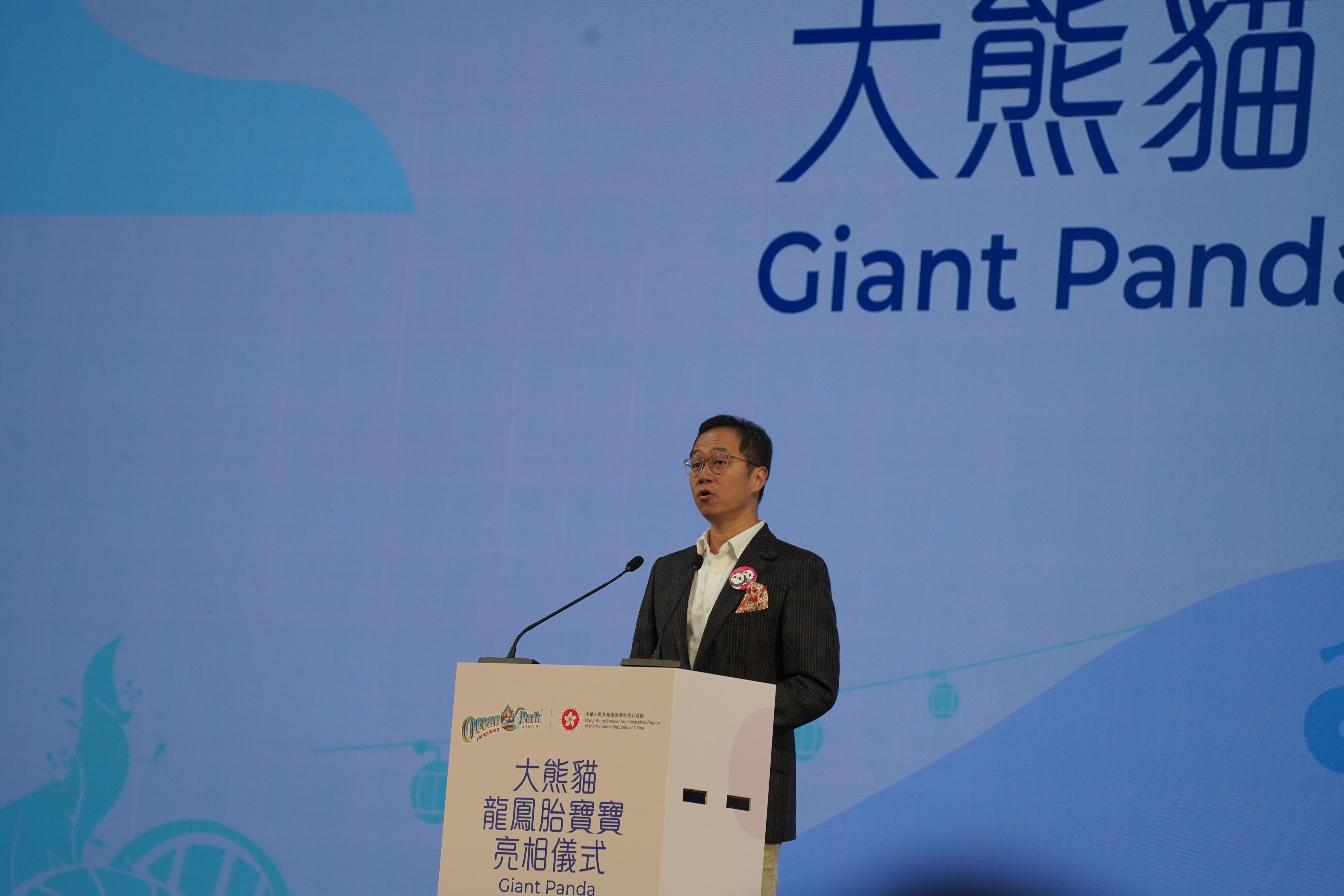 龐建貽回應時再次感謝中央政府,把珍貴的大熊貓送給特區政府。他指大熊貓生仔可謂來之不易,是經歷過十幾年的艱辛探索。大熊貓在香港一直佔有重要地位,保育工作也一路受到公眾支持,所以大家見到大熊貓寶寶誕生,覺得是奇跡。過去半年在傳媒曝光下,這對大熊貓龍鳳胎成為明星,園方未來會繼續努力,將公眾對大熊貓的熱情延續下去。