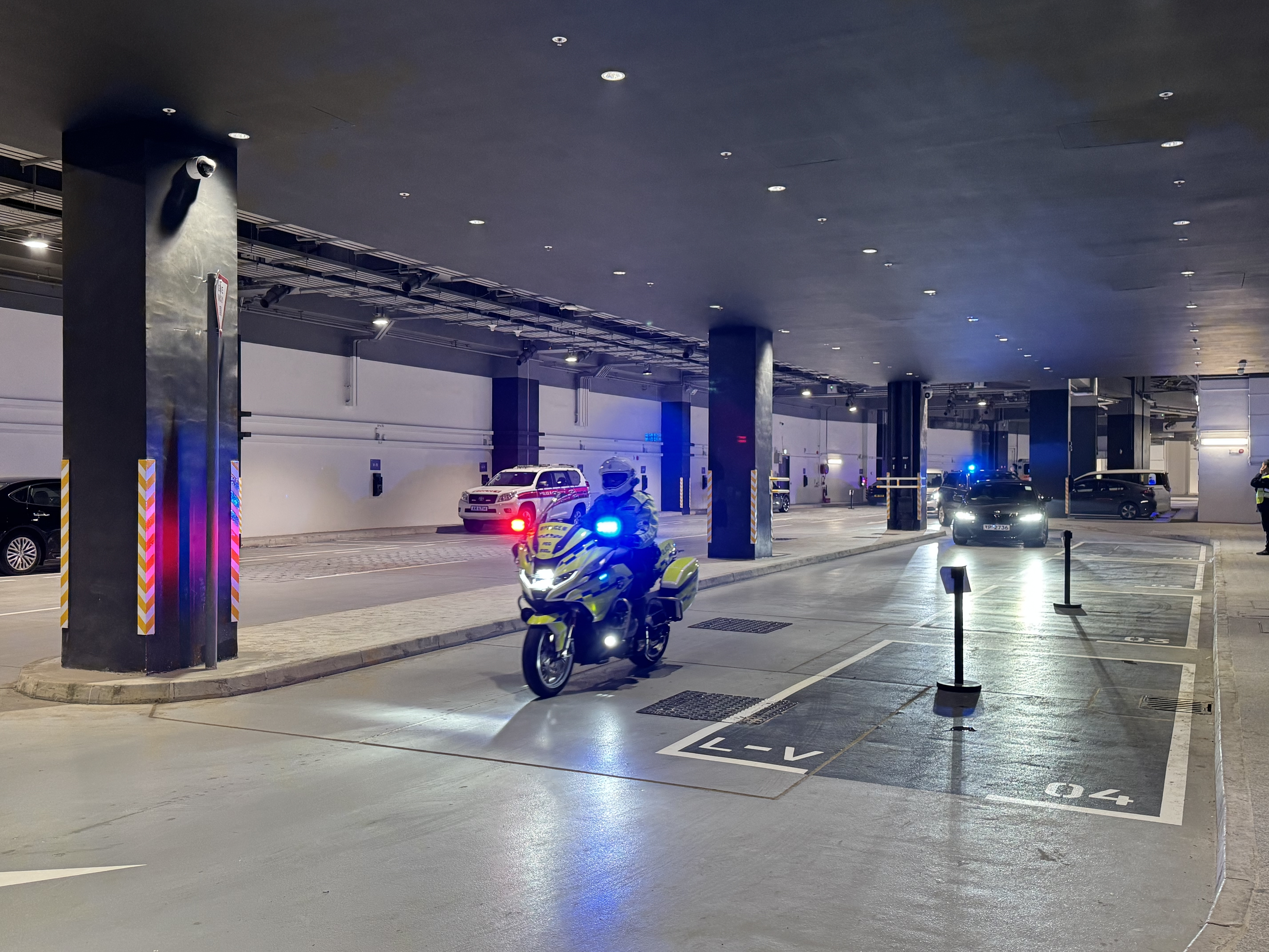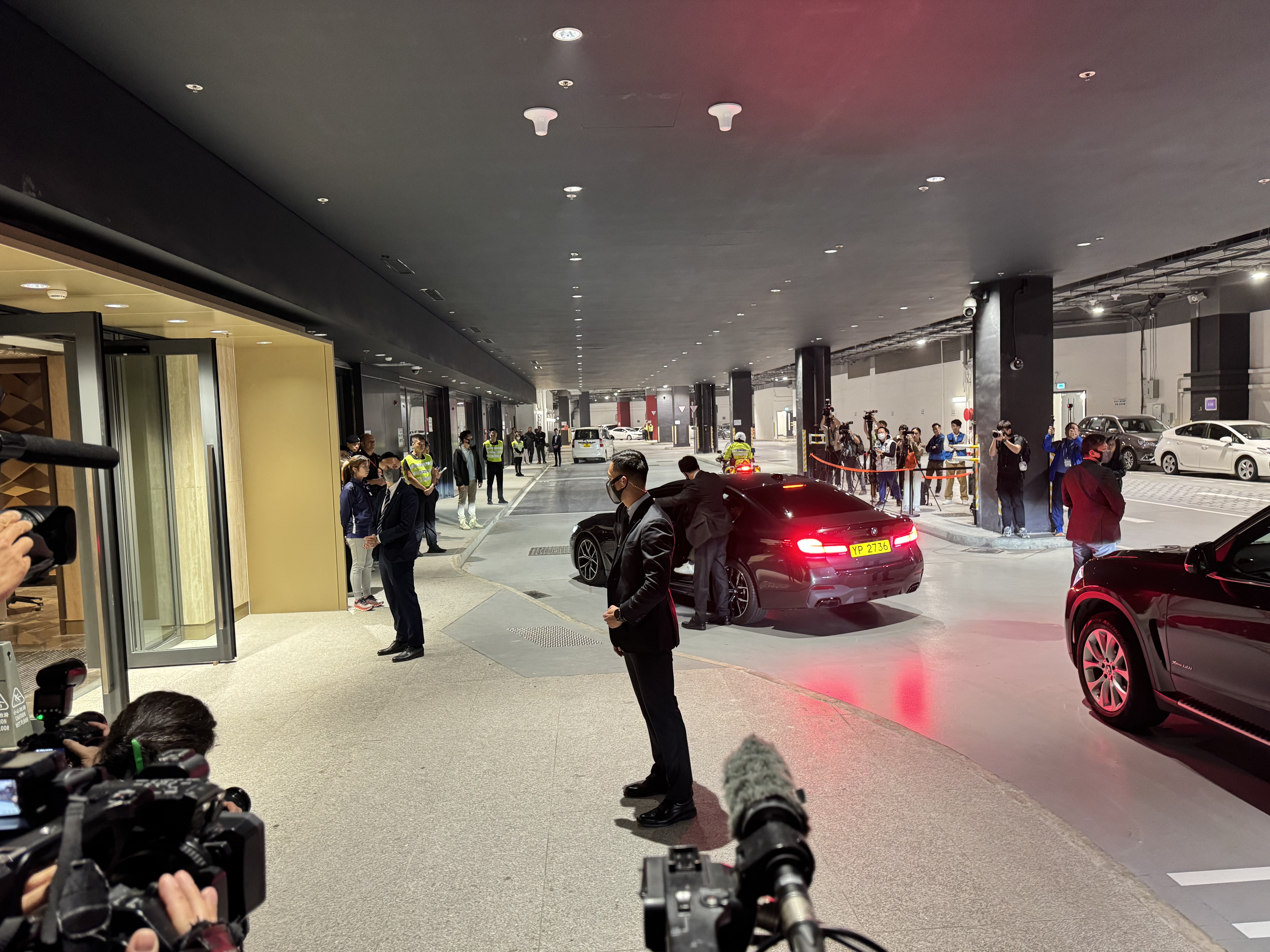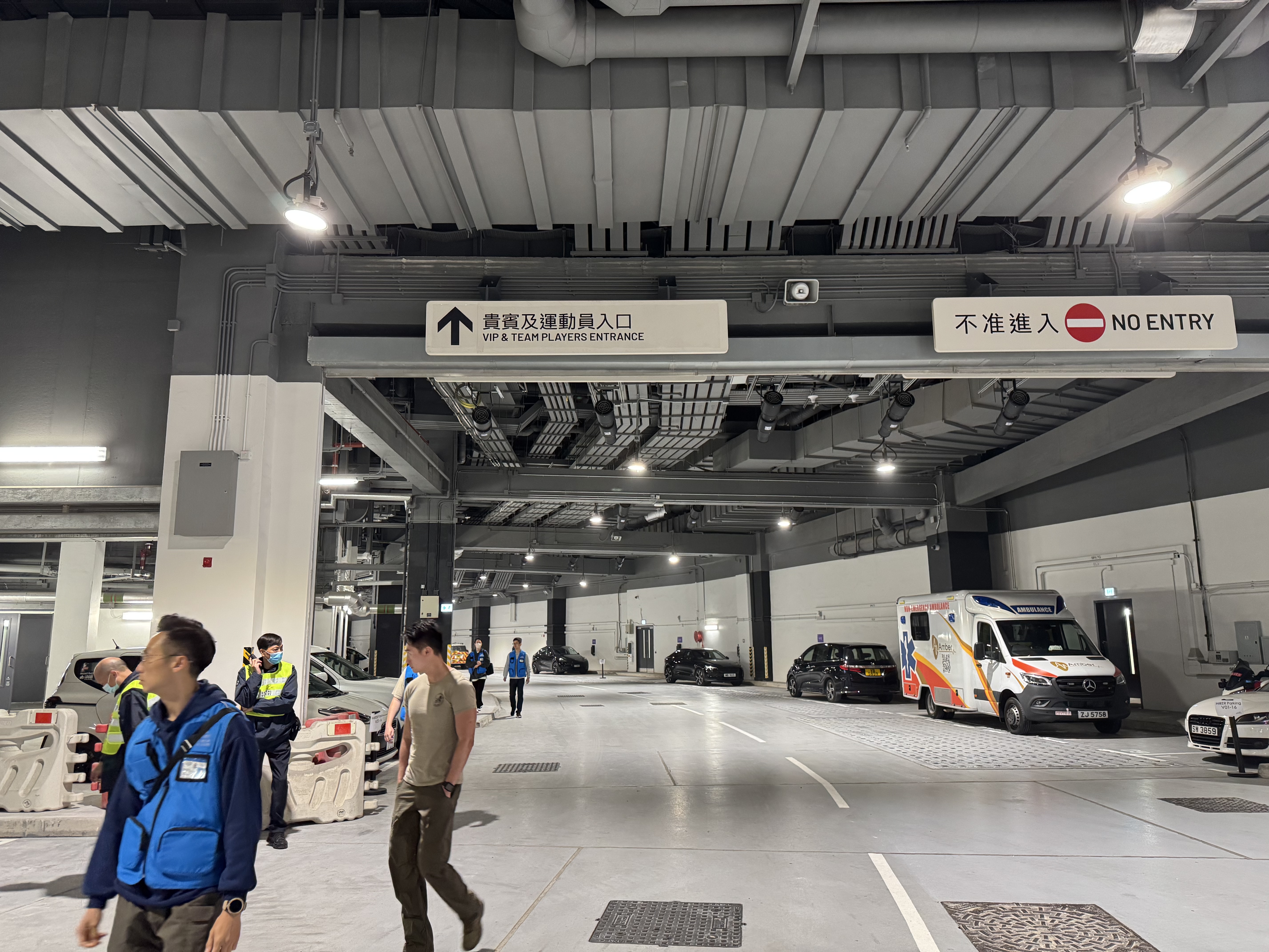 本次演練中,場館有關於貴賓到達情況的模擬,貴賓於下午4時06分從主場館的貴賓入口進入場館。據現場工作人員介紹,今次模擬貴賓入場總共安排有35輛車,包括一位vvip貴賓,由1輛警摩和5輛私家車將其送至貴賓入口。