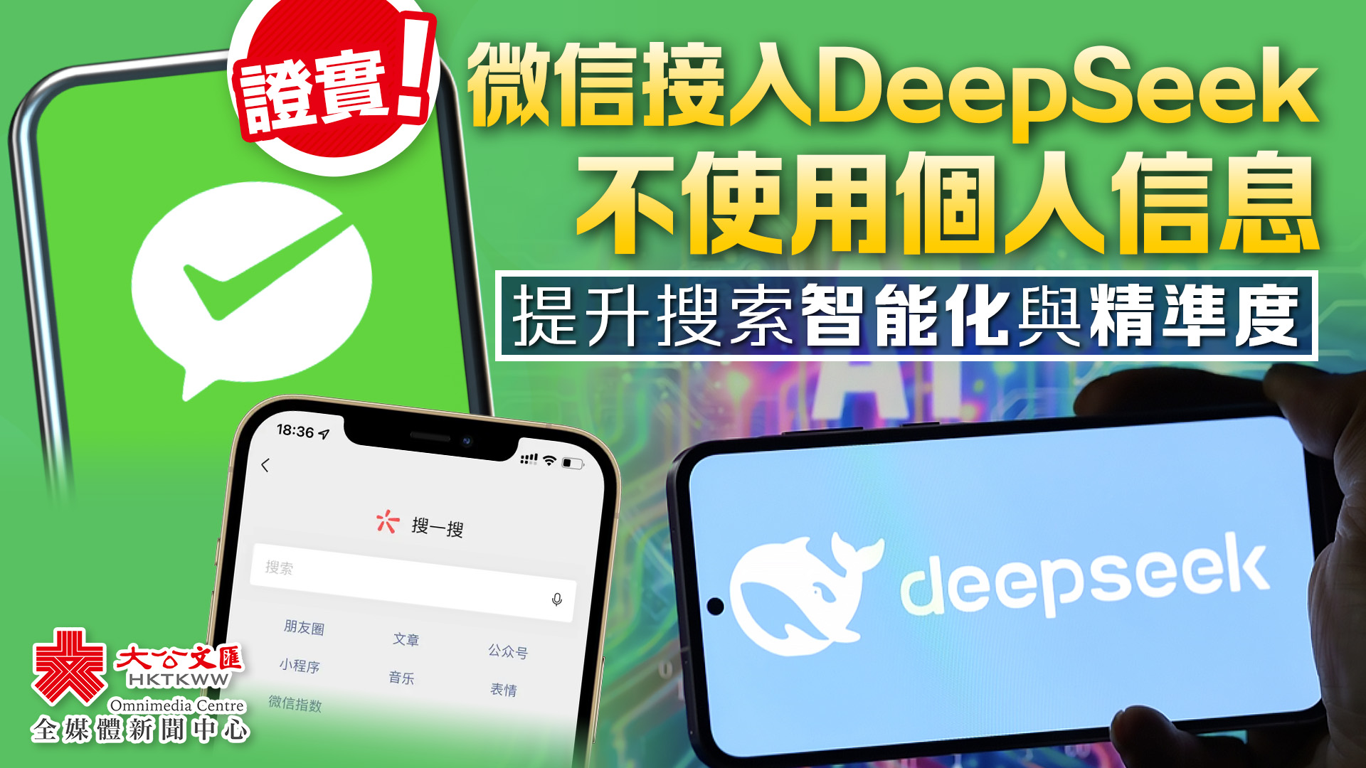 騰訊集團16日確認,微信正式「灰度測試」(指在某項產品或應用正式發布前,選擇特定人群試用,再逐步擴大其試用者數量)接入DeepSeek,部分測試用戶可在微信對話框頂部搜索入口看到「AI搜索」字樣,點擊進入後,可免費使用DeepSeek-R1滿血版模型,獲得更多元化的搜索體驗。若未顯示該入口,說明此次灰度測試暫未覆蓋到該用戶賬號,可耐心等待後續開放。騰訊方面表示,「AI搜索」僅整合公眾號及互聯網其他公開信息,不會使用用戶的個人信息和相關隱私信息。