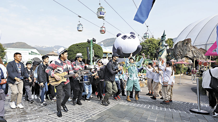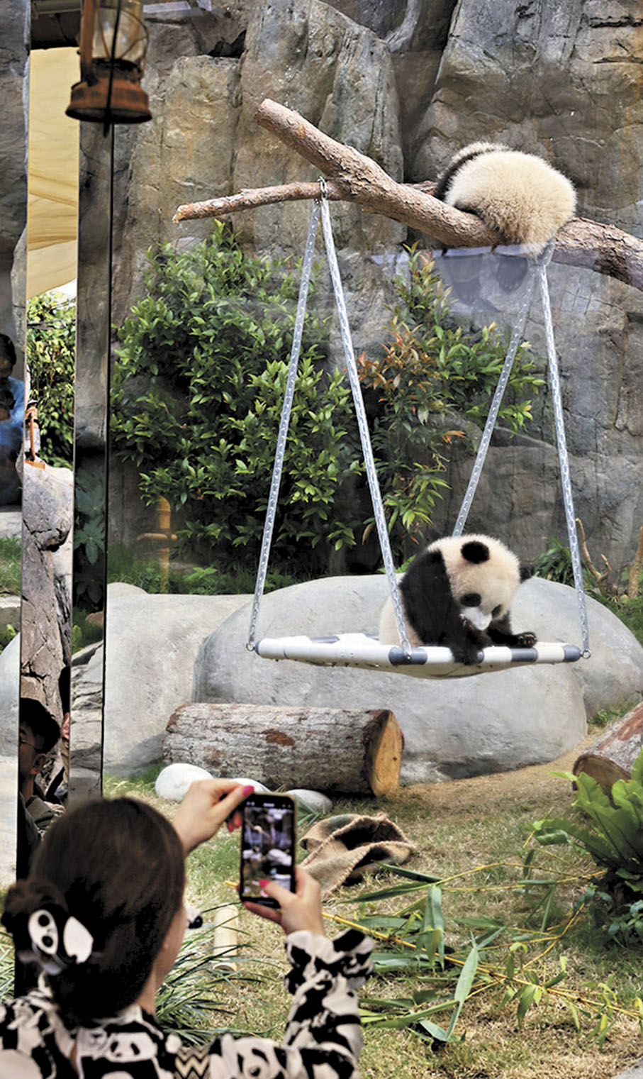 (香港文匯報記者 張弦<文>、黃艾力<圖>)在香港出生的一對熊貓龍鳳胎寶寶「家姐」「細佬」昨日首次與公眾見面,大批期待已久的市民及旅客早上提前兩三個小時便到達海洋公園門外等候入場探望。海洋公園開門約半小時後,因為等候入場館的輪候人數太多而實施人流管制,參觀者要領取不同時間段的門券才能入場,輪候時間約需一個小時。有本地熊貓發燒友提前兩個小時到達海洋公園,形容龍鳳胎與想像中一樣活潑可愛;有內地熊貓發燒友更從成都來港探望大熊貓寶寶,表示有機會將再到香港探望。多位立法會議員及區議員均認為,可透過文創產品、網站直播、大熊貓電影、紀錄片等多種形式促「熊貓經濟」發展,並與其他大熊貓明星如「花花」、「福寶」等聯動,打造「熊貓家族」網絡。