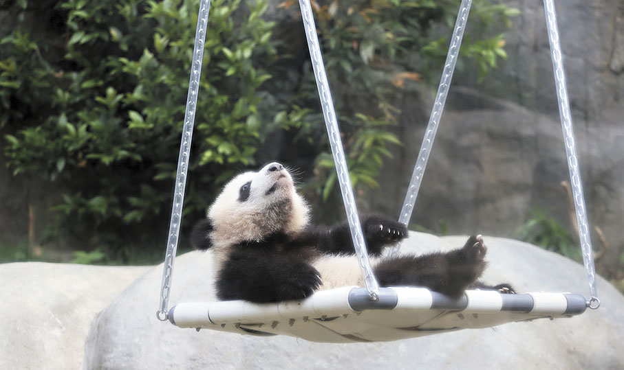 譚小朋友昨日與家長從深圳趕到香港看大熊貓寶寶,表示看到熊貓盪鞦韆,感覺十分可愛,探望完大熊貓後亦在紀念品商店購買了數款相關紀念品,包括有兩隻大熊貓造型的頭箍。