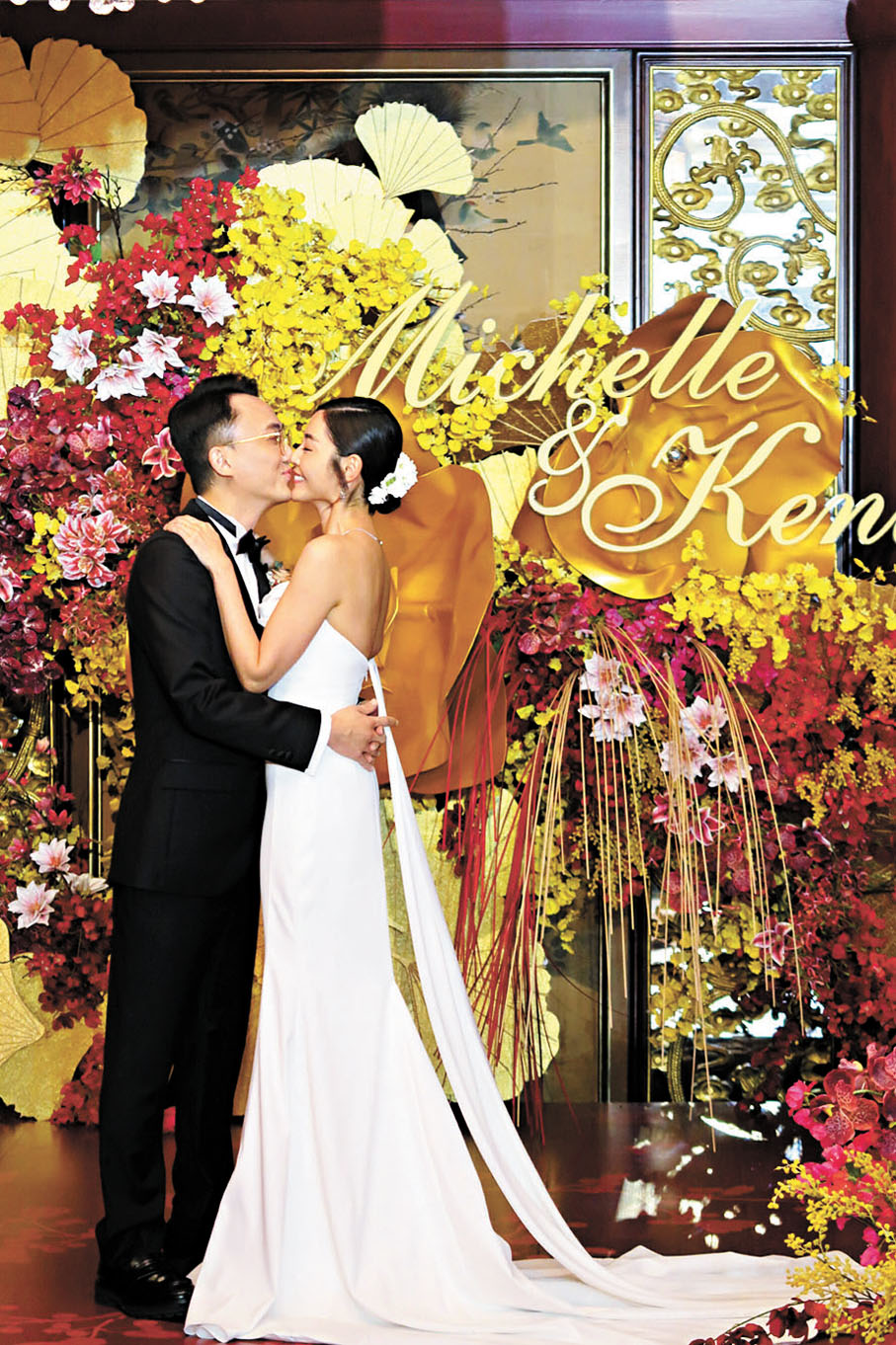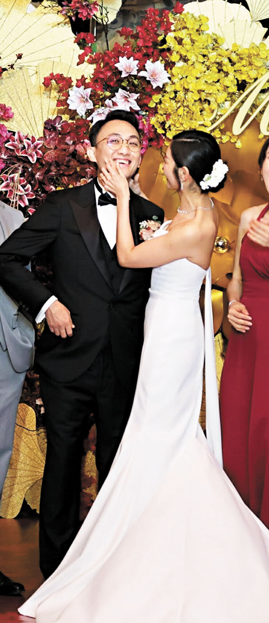 (香港文匯報 記者 梁靜儀、達里)衛詩雅昨日與拍拖兩年半的醫美醫生男友周祉安結婚,一對新人下午在教堂舉行西式婚禮,晚上筵開廿多席招待親友,不少圈中人前來觀禮恭賀,衛父幽默送愛女出嫁,衛詩雅高呼「好想喊」,自認「大頭蝦」怕弄丟婚戒,難忘行禮「擺烏龍」套錯婚戒,貼心幫新郎周祉安抹唇印,而新郎哥表示已改口叫「老婆大人」。衛詩雅為參加「金像獎」延期度蜜月,新郎周祉安隨時候命,盼見證太太得獎一刻。