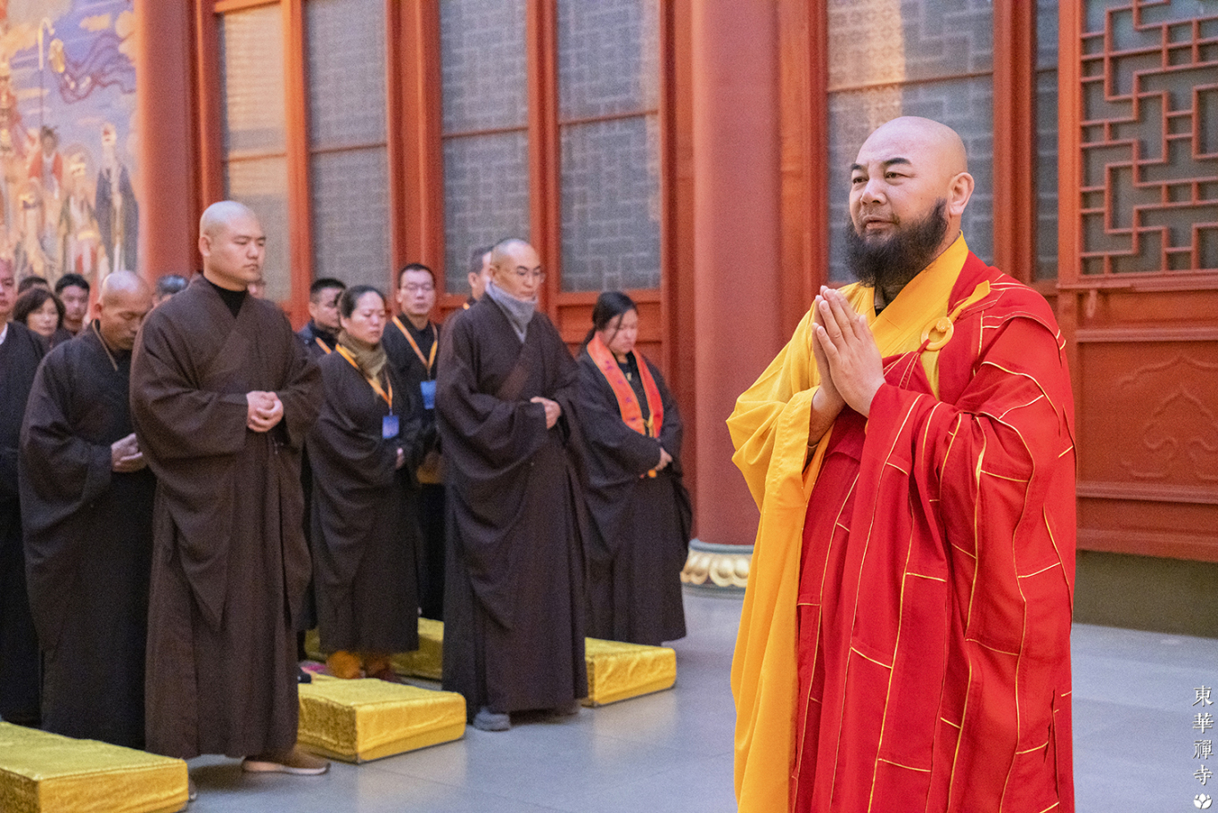 禪宗叢林中,方丈和尚作為僧團首領,另設有「四大班首」和「八大執事」,共同協助方丈管理寺院事務。執事法師的任命不僅是對個人修行的肯定,更是對僧團和合共修的期許。萬行大和尚在儀式中勉勵僧信和合,續佛慧命,同心協力,希望大眾以「借事煉心,奉獻人生」為宗旨,為「世界和平、人民福祉」貢獻力量,踐行「東華禪」精神,在盡責中修福報,在奉獻中修解脫。