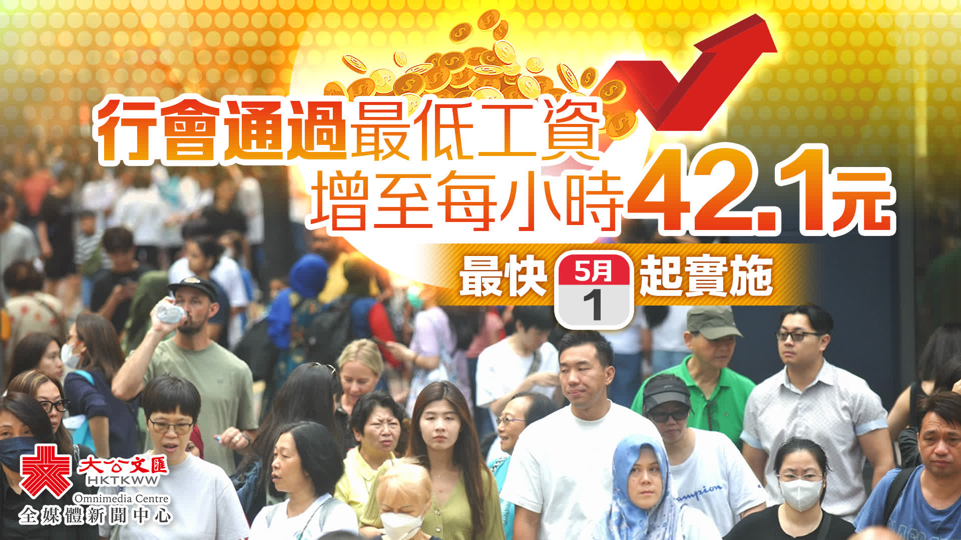 大公文匯全媒體報道,行政長官李家超會同行政會議已接納最低工資委員會的建議,將法定最低工資水平由現行每小時40元調升至42.1元,增幅為2.1元或5.25%。