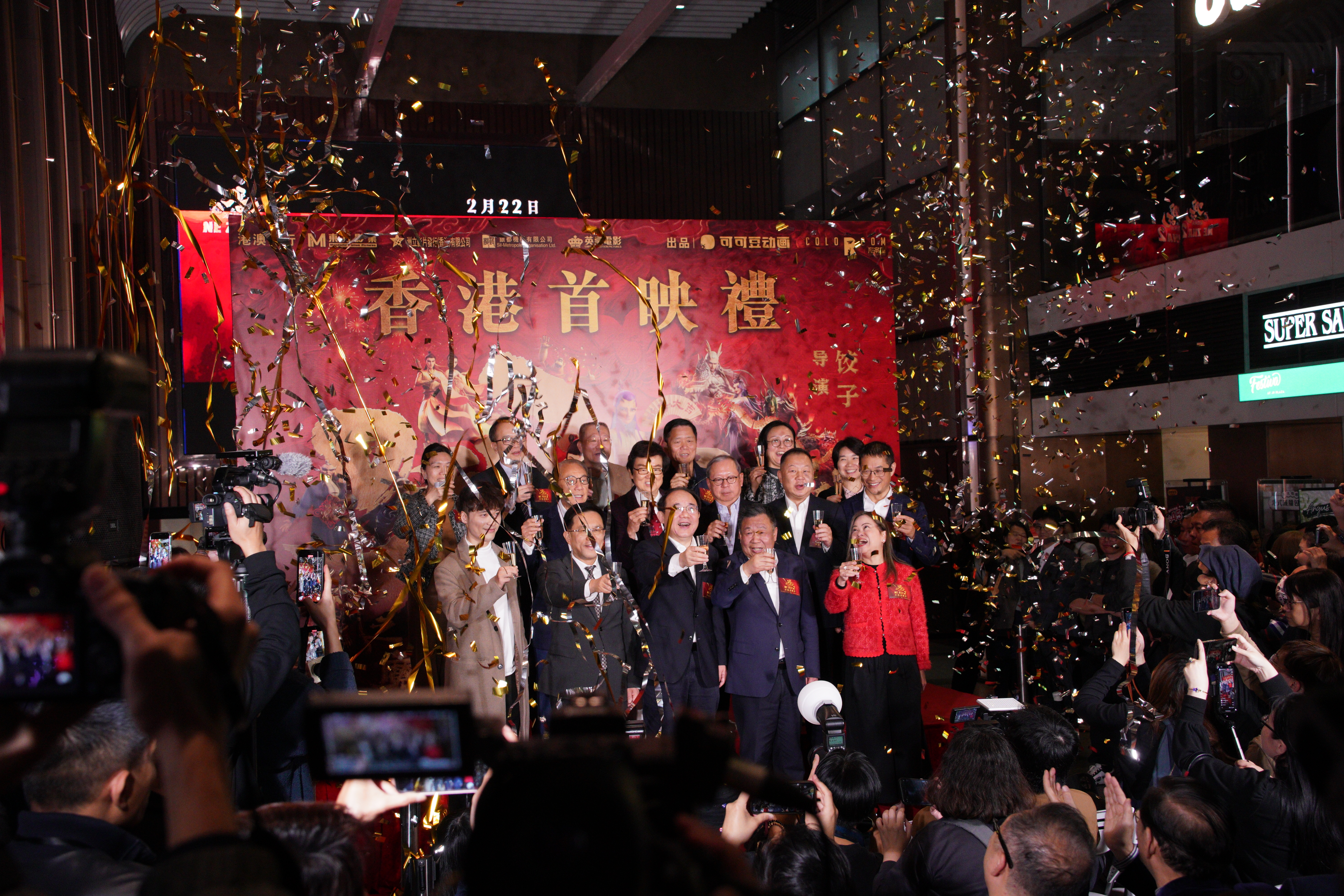 (大公文匯全媒體 記者 陳子萌、周禹含)《哪吒之魔童鬧海》(《哪吒2》)由東方影業、洲立影片發行(香港)有限公司、銀都機構及英皇電影聯手在港澳發行,將於2月22日在香港和澳門全院線上映。《哪吒2》今日(18日)在銅鑼灣翡翠明珠廣場一樓舉行香港首映禮,文化體育及旅遊局局長羅淑佩、東方影業主席黃百鳴、麗新集團主席林建岳、英皇集團主席楊受成等一眾嘉賓名人出席活動。