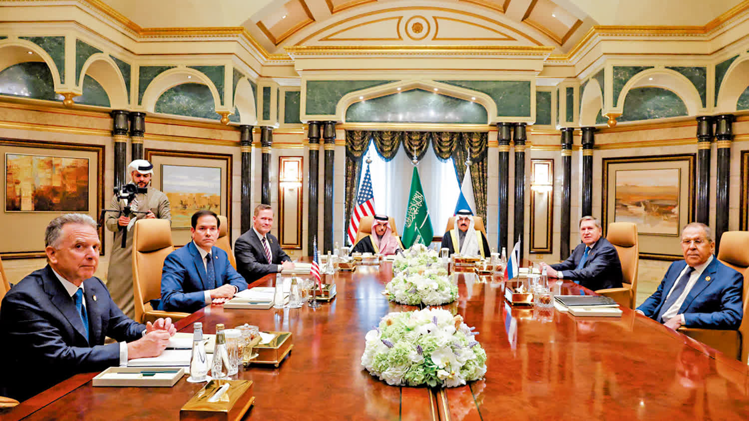美俄雙方官員在沙特會晤約四個半小時。當日參與會談的美方代表是國務卿魯比奧、國家安全事務助理華爾茲和中東問題特使威特科夫;俄方代表是外長拉夫羅夫和烏沙科夫。沙特外交大臣費薩爾也在會議現場,而作為當事方的烏克蘭及歐洲國家則沒有代表在場。