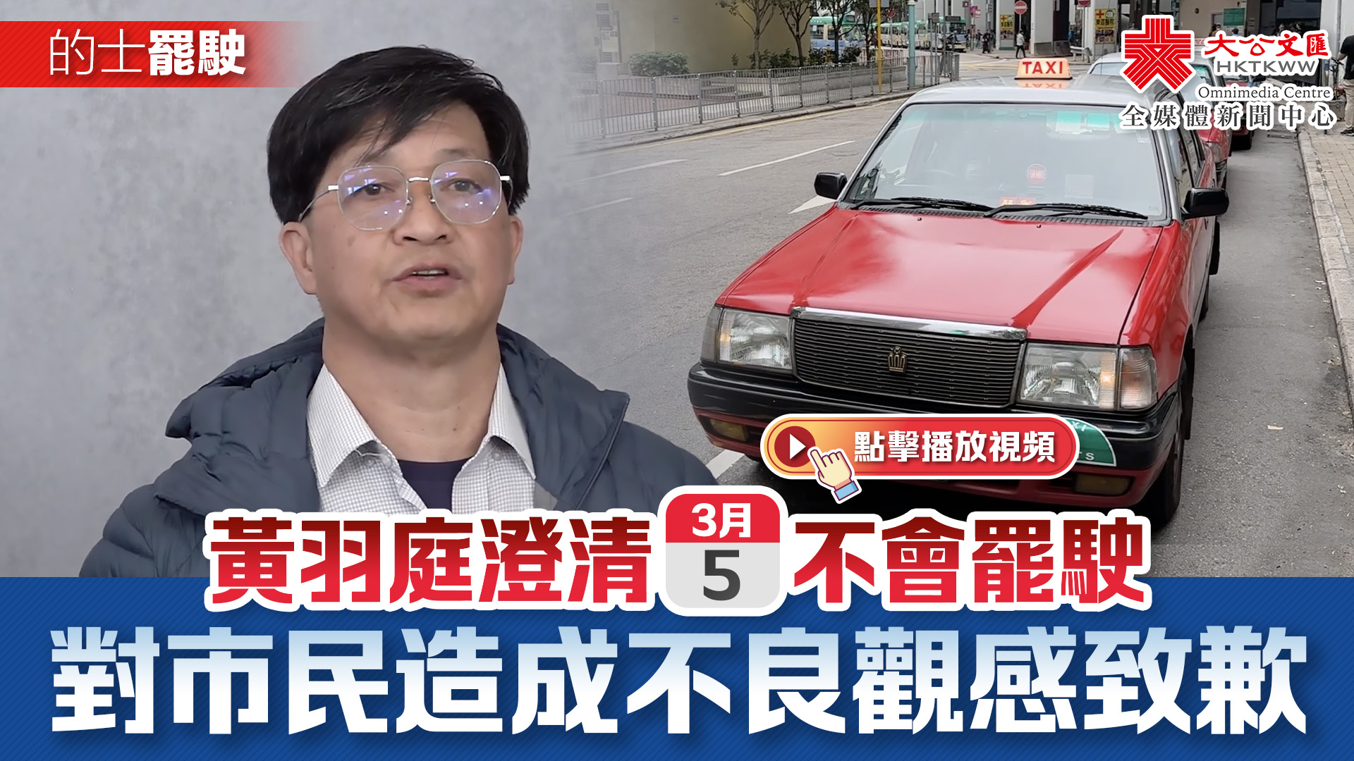 黃羽庭說,既然行政長官李家超親自承諾打擊白牌車,因此他正式宣布停止3月5日「的士罷駛」議題,並向廣大市民致歉。
