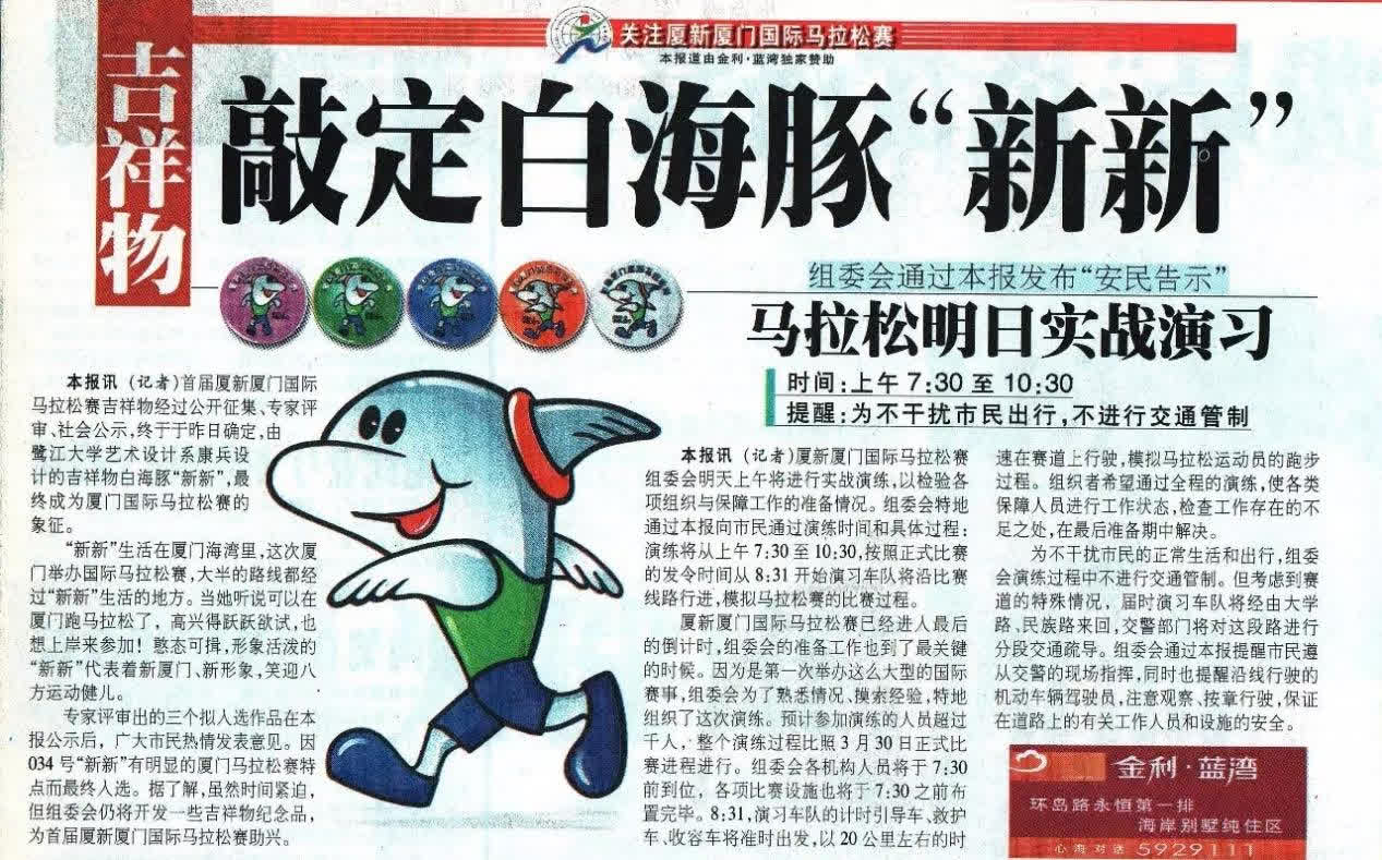 初春3月,首屆廈門馬拉松賽鳴槍起跑。賽事吉祥物「新新」的形象,就是來自廈門本地的保護動物白海豚,賽事的生態保護意識初顯萌芽。
