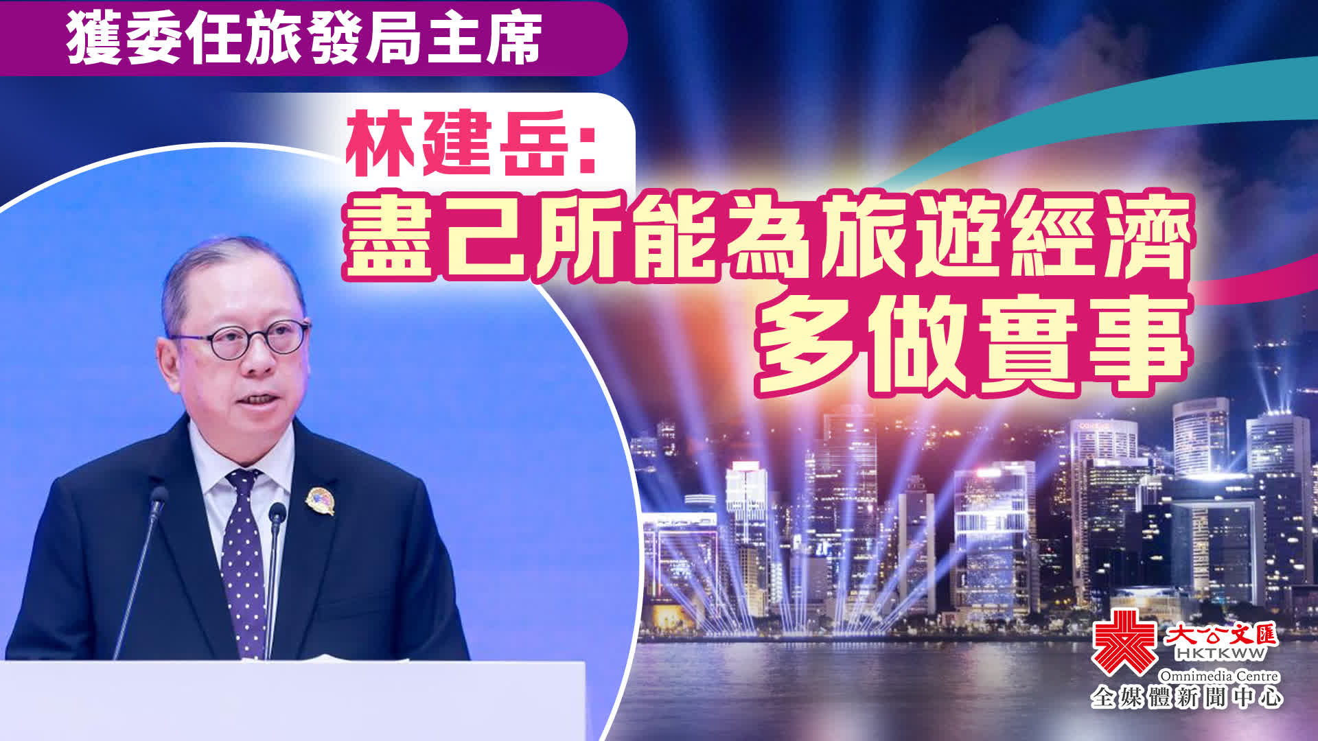 林建岳表示,香港旅遊業面對不少挑戰,也面臨很多機遇。振興香港旅遊業,需要「依靠國家支持、發揮香港優勢、聯通國際資源」。他會致力深化大灣區旅遊合作,推銷「一行多站」來吸引更多的海外遊客;爭取擴展「一簽多行」吸引更多的內地遊客;全力發揮香港會展之都優勢,吸引更多的商務遊客,讓香港成為「無處不旅遊」的旅遊勝地。