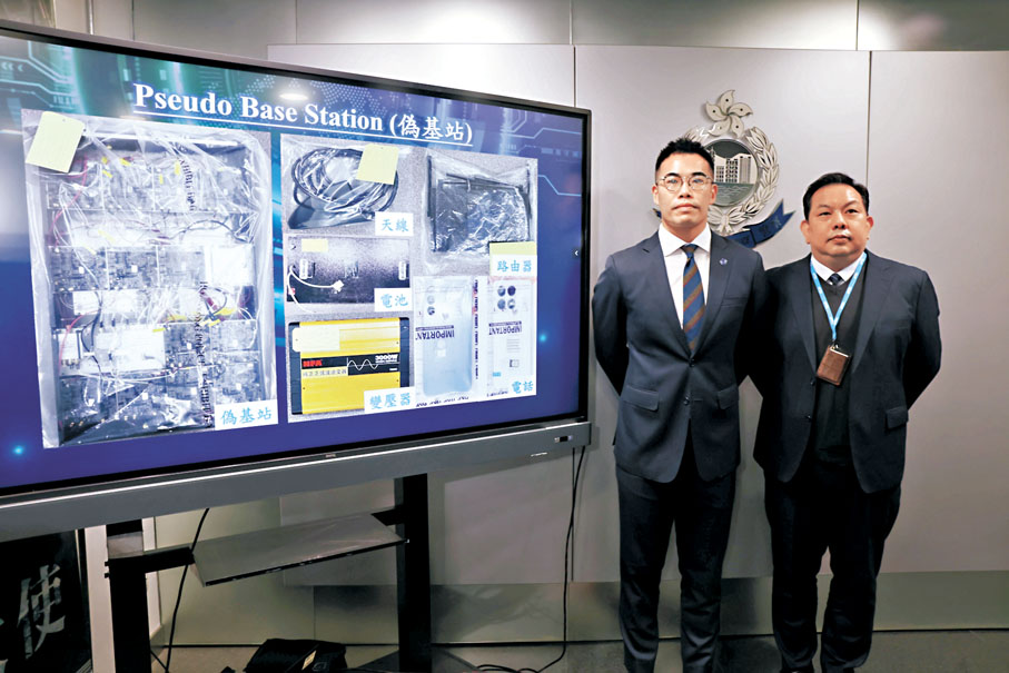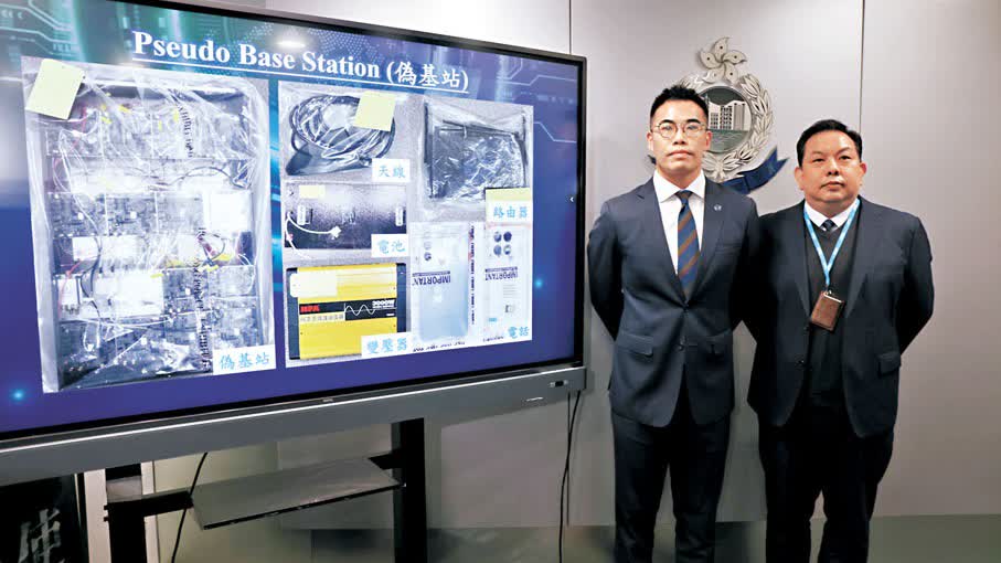 (香港文匯報 記者 蕭景源)為加強堵截詐騙短訊,通訊事務管理辦公室自2023年12月28日起實施「短訊發送人登記制」,「已獲認證的發送人」發送短訊會有「#」號開頭,以供本地用戶識別。過去一周,有騙徒利用「偽基站」冒充認證的「#」號發送釣魚詐騙短訊,警方最少接獲28名市民舉報,有人中招失逾2萬元。警方網罪科經深入調查和追蹤,揭發有騙徒租用客貨車,在車上設置「偽基站」發送詐騙短訊,並於本周一(17日)在旺角截停一輛客貨車,在車上拘捕一名青年及檢獲無線電干擾器等器材,相信他利用流動「偽基站」發送上萬條短訊,正追緝幕後主腦和同黨,以及購買「偽基站」設備的途徑。